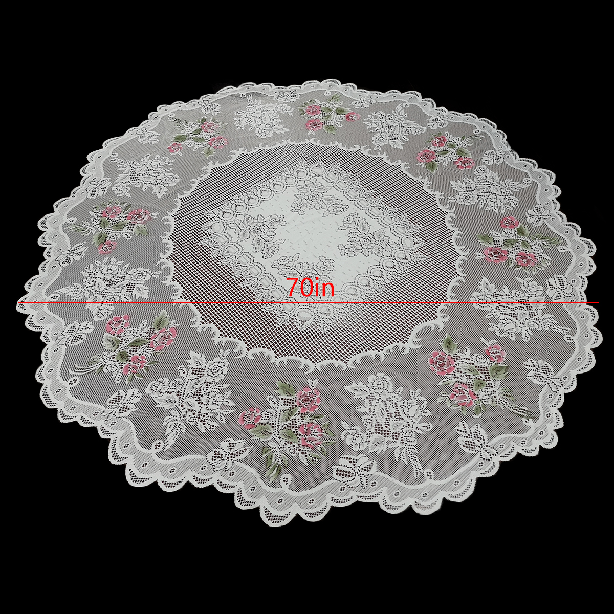 SPECIFICATIONS: Material: 100% Polyester Shape: Round Size(Diameter):180cm/70inch Color:White Design:Floral