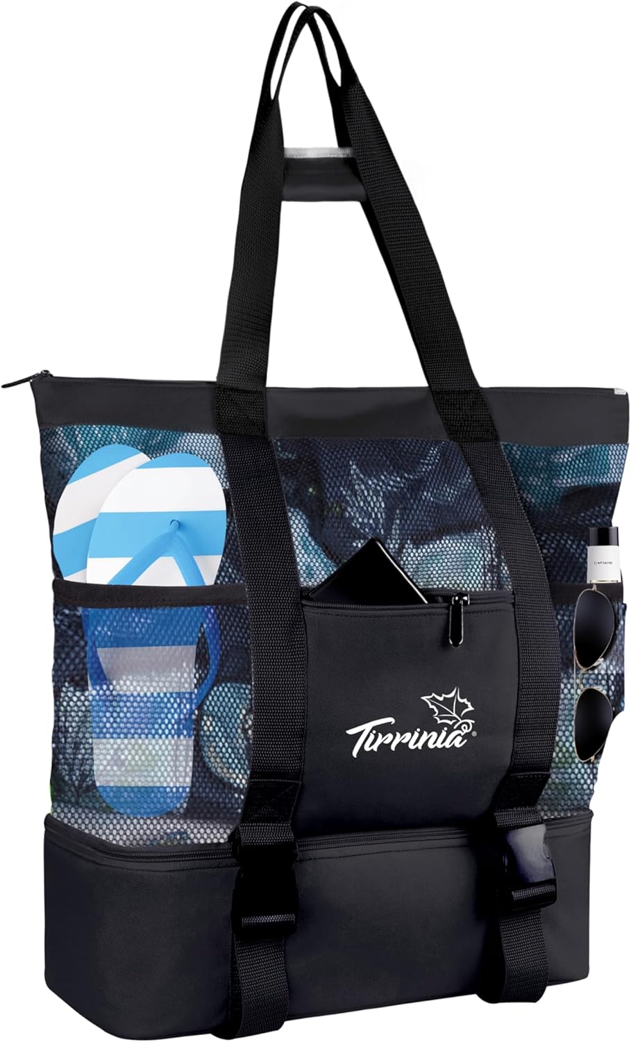 Tirrinia Mesh Beach Bag with Cooler Compartment, Extra Large Totes for Beach Travel, Functional Fashion Beach Bag for Women