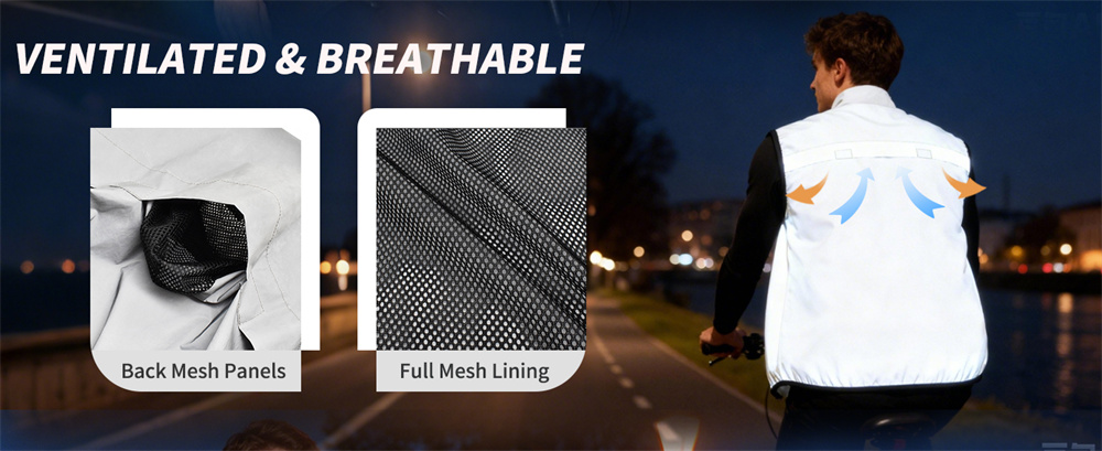 Reflective outer fabric, large mesh lined, breathable