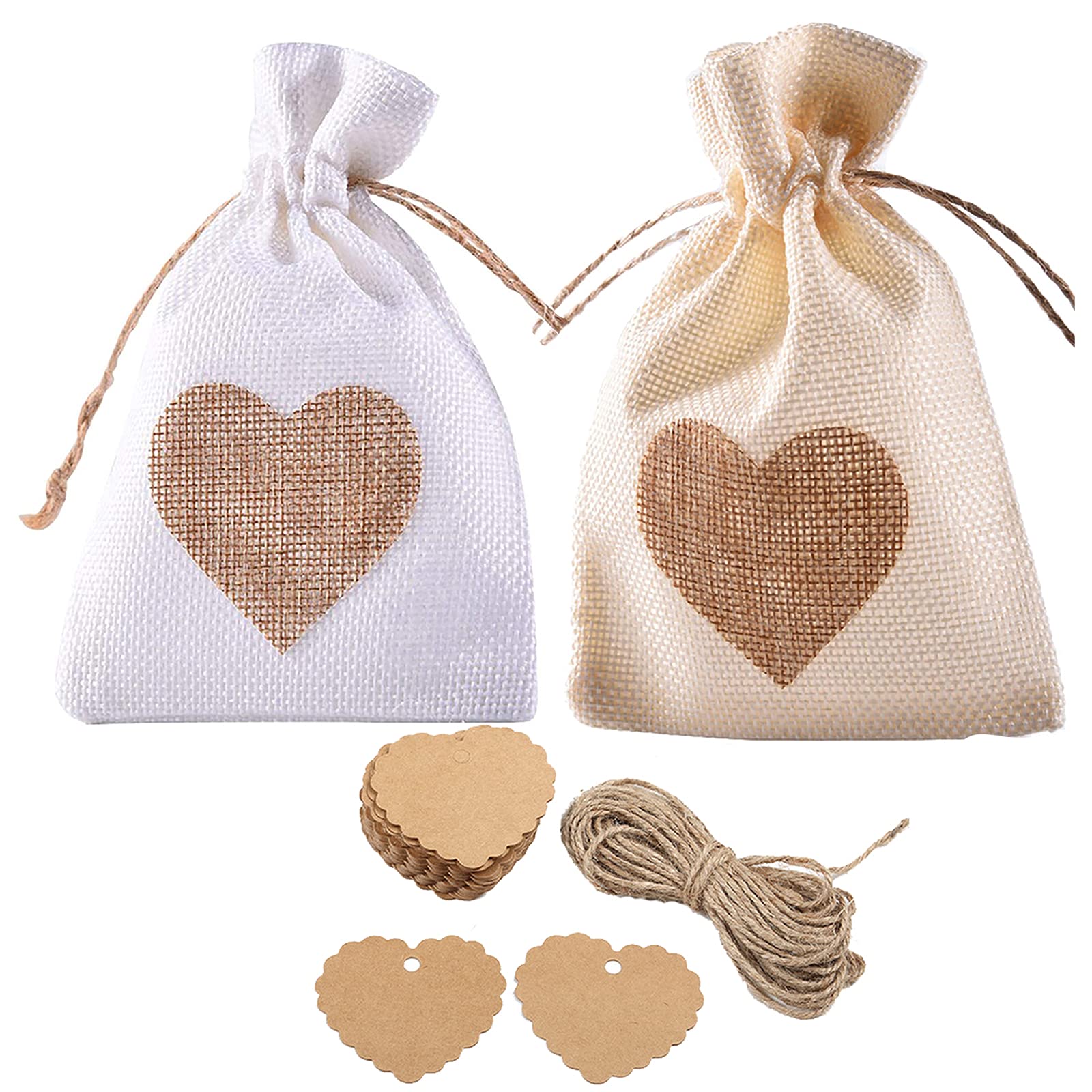 Burlap Bags, 20 Packs 4"x6" Heart Burlap Bag With DIY Tag Drawstring Gift Bags Candy Pouches Linen Gift Pockets for Valentine's Day Wedding Easter Christmas Halloween Thanksgivings New Year