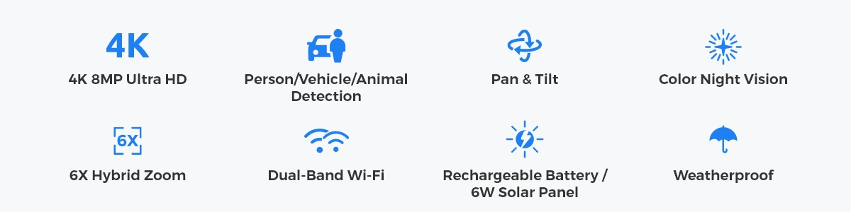 | Other Features | Smart Alarm | PIR detection; motion detection; person detection; vehicle detection; animal detection |