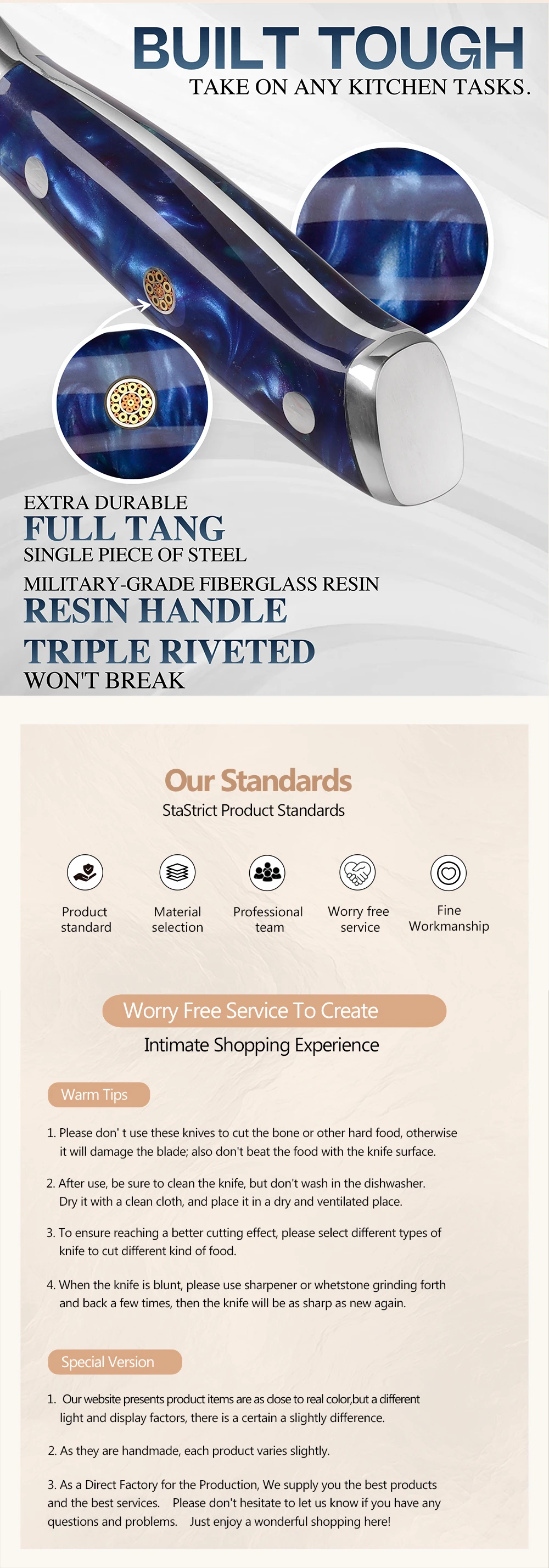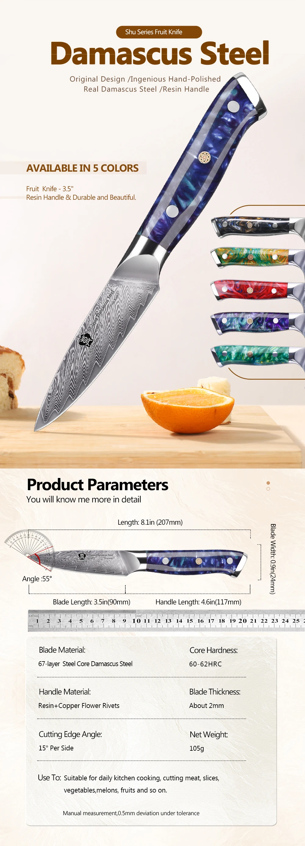 Handle Material: Resin Handle & Mosaic Brass Rivet