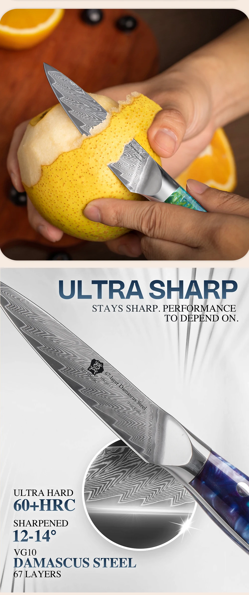 WILDMOK SHU Series 67-Layer Damascus Steel Fruit Knife