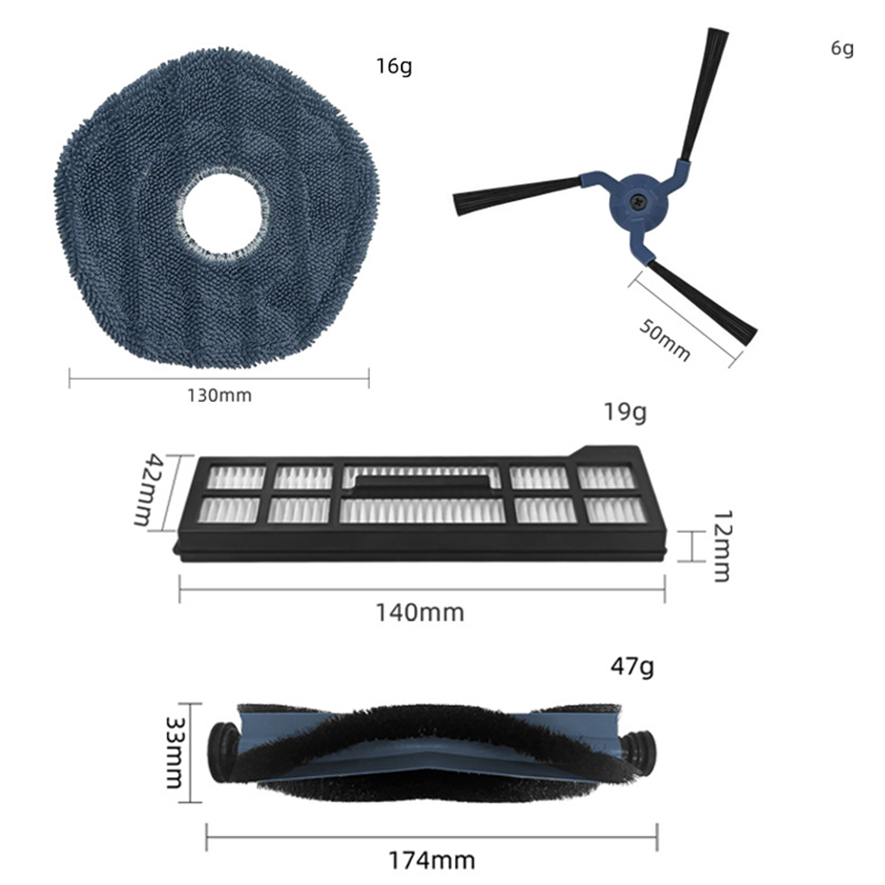 *High-efficiency components: The main side brushes, filters, mopping cloths and dust collection bags are made of high-quality materials to ensure durability. They effectively capture dirt, dust and debris for a thorough clean.