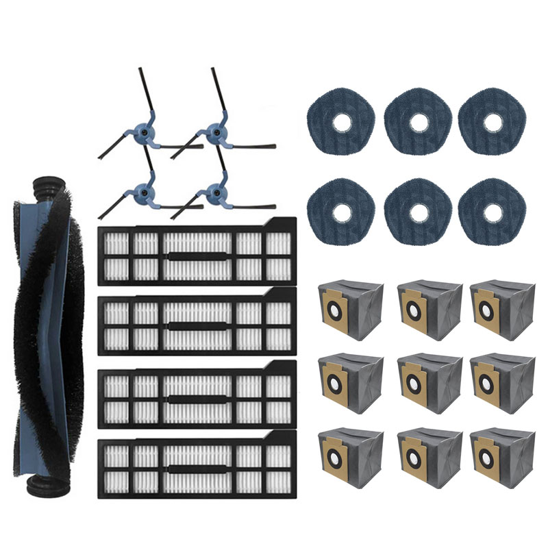 1 main brush + 2 pairs of side brushes + 4 filters + 4 rags + 4 dust bags
