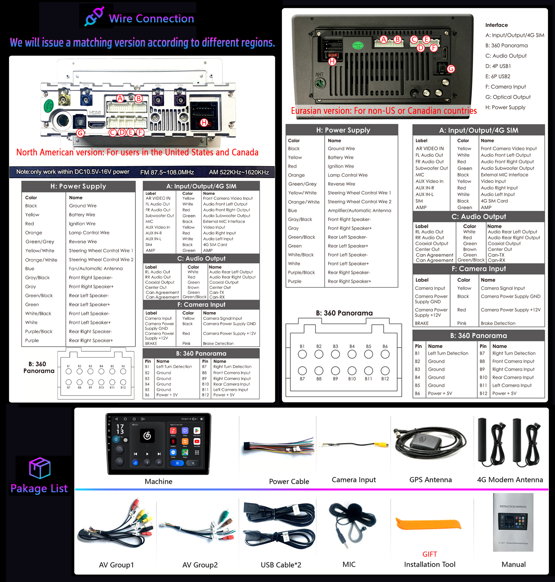 (1)The condition for the car stereoto turn on is that ACC (G3) and 12V (G2) are connected to the positive pole of the car's 12V power supply, and G1 is connected to the negative pole of the power supply. There may be a very small probability that the power cord does not match your car. You can directly connect these 3 power cords Connect the power cord of the car without the radio