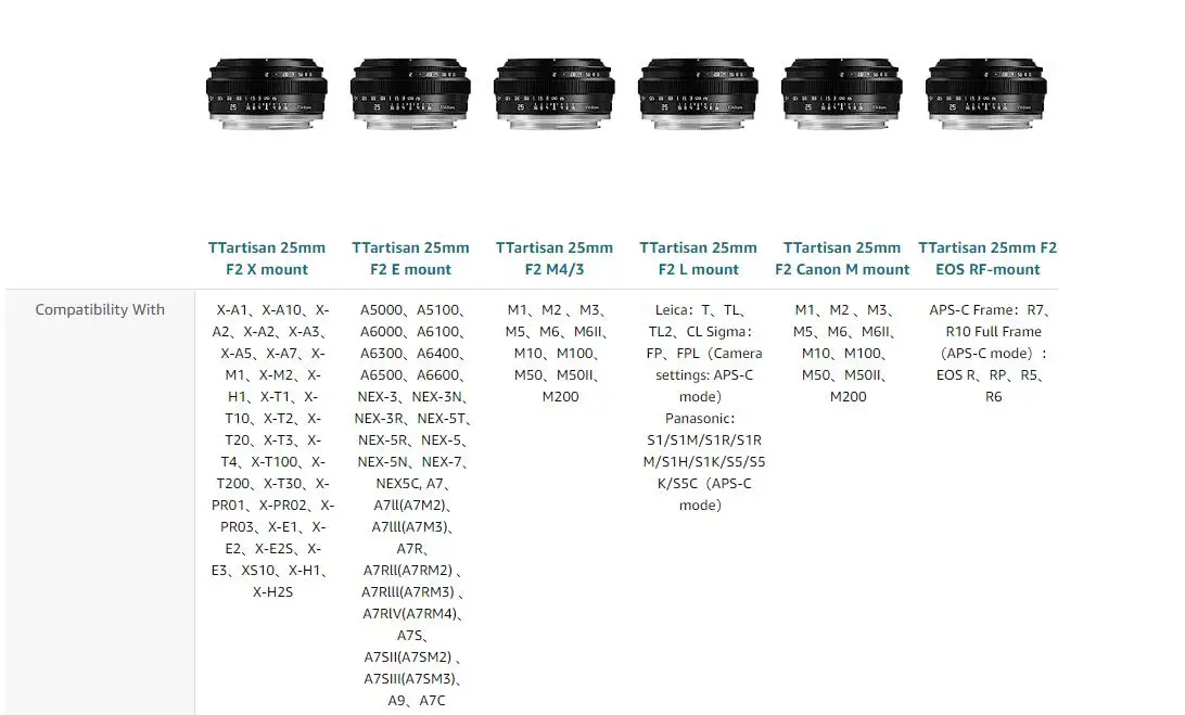 Applicable models: (All for Mirrorless Cameras Not for SLR Cameras)