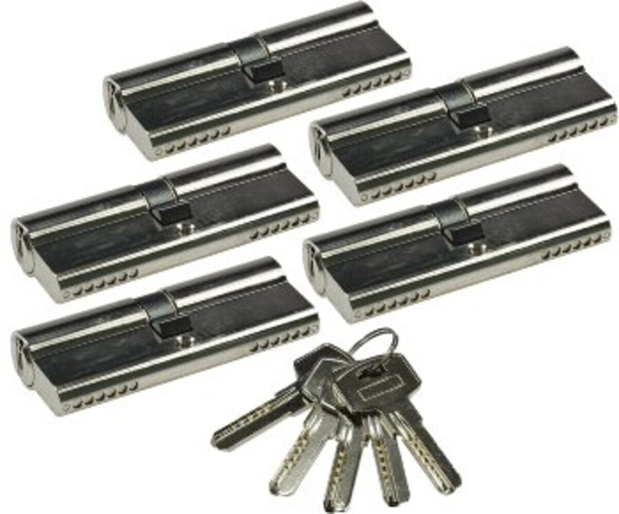 3x Hochwertige Profil-Sicherheits-Schließzylinder mit 5 Sicherheits-Schlüsseln. Viele günstige Schlösser haben je Bartzacken nur 4 verschiedene Positionen, so dass relativ leicht Nachschlüssel zu machen sind. Die ChiliTec Schließzylinder haben je 8 Positionen, aus denen sich hunderttausende verschiedener Schlüssel ergeben. Ein kleines Detail mit großem Plus für Ihre Sicherheit! - 3 gleichschließende Zylinder - für Innentüren und Außentüren geeignet - für Haus-Eingangstüren und Wohnungs-Abschlusstüren - 6-Stift-Zylinder für höchste Sicherheit - zur Verwendung in DIN Einsteckschlössern - Zylinder massiv Messing mit satinierter Nickel-Beschichtung - Schlüsselstärke 2,4mm - 3 Stück Schließzylinder inklusive 5 Sicherheits-Schlüssel mit Muldenbohrungen - für Stulp-Schrauben M5 - Gesamtlänge 60mm: 30+30