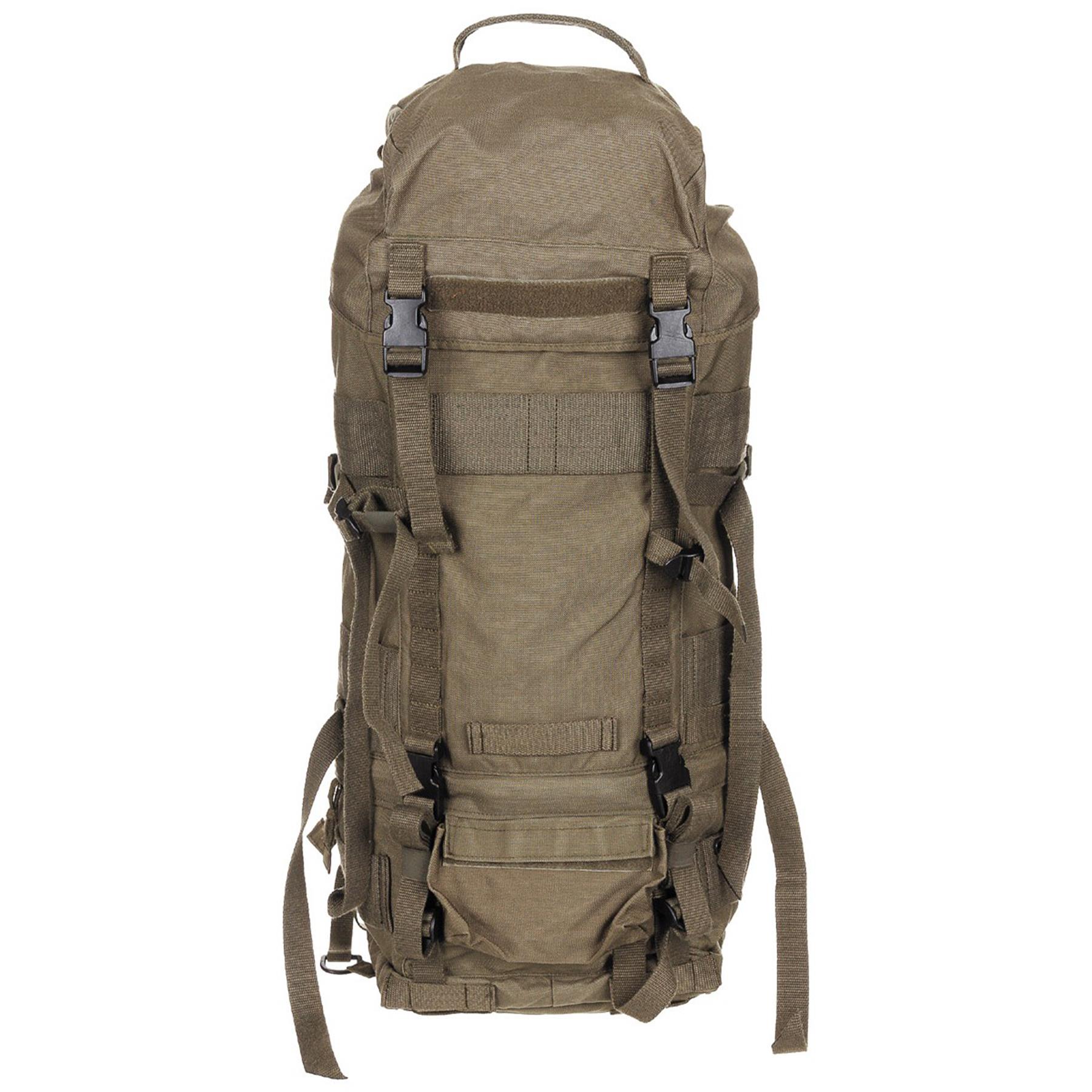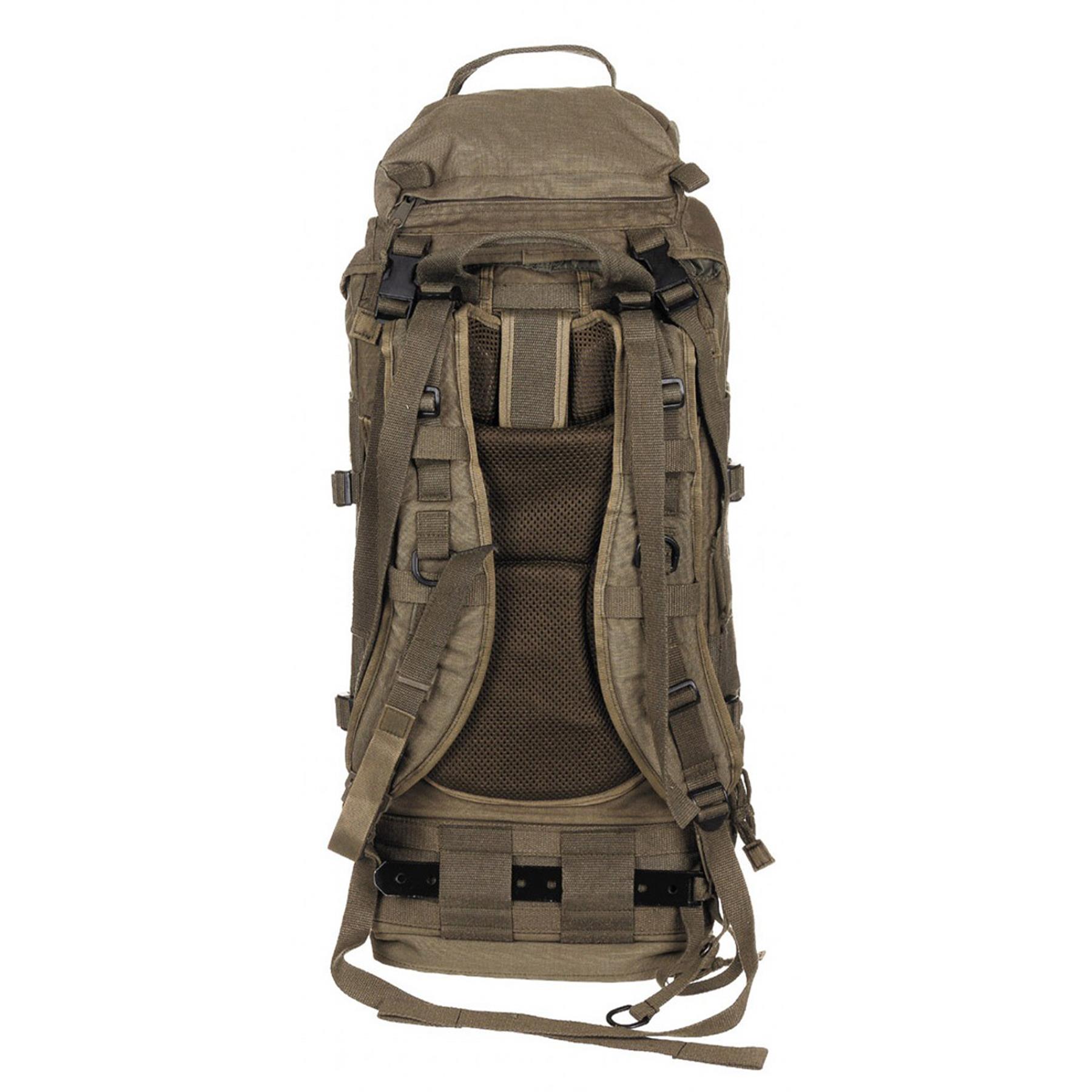 This tactical backpack boasts a rugged olive color, making it suitable for blending into natural environments. It is constructed from high-quality nylon, ensuring durability and resistance to wear and tear. The backpack includes a padded back part, providing excellent comfort during prolonged use, making it an ideal choice for hiking, camping, and military operations.