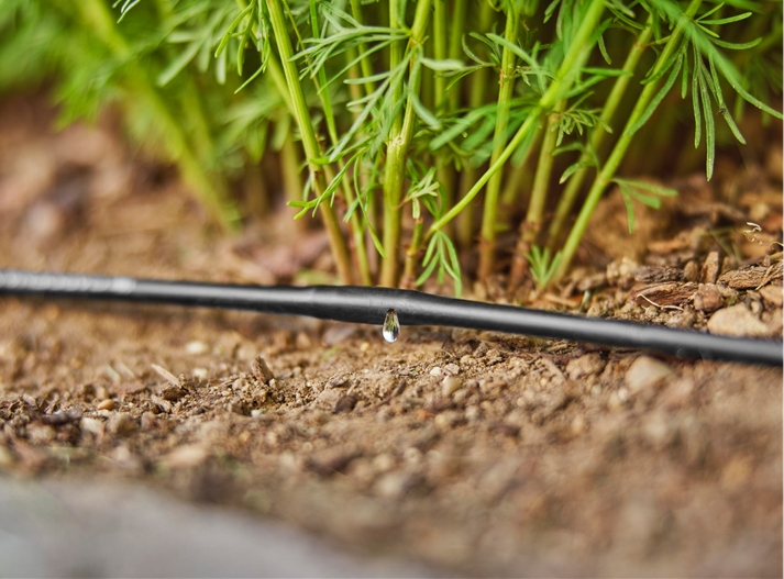 The Gardena 1362-20 Drip Line for reliable drip irrigation of smaller row plantings and delicate crops. The 15 m long Drip Irrigation Line 4.6 mm (3/16") from Gardena reliably and water-savingly irrigates your shrubs, flower beds, and delicate crops. Installation is quick and easy - unroll the pipe to the plants and fix it with the Peg Pipes. There is an integrated Drip Head in the pipe every 30 cm. Each one releases a constant 1.6 litres of water per hour to supply the plants optimally. The self-cleaning Drip Heads won't get blocked thanks to the labyrinth technology. This is possible anytime if you want to extend the Drip Irrigation Line to 30 m. Add the separately available 4.6 mm connectors with Easy & Flexible connection technology and an additional Drip Irrigation Line. Connect the Micro-Drip-System to a GARDENA Water Control for even more convenient automatic irrigation.