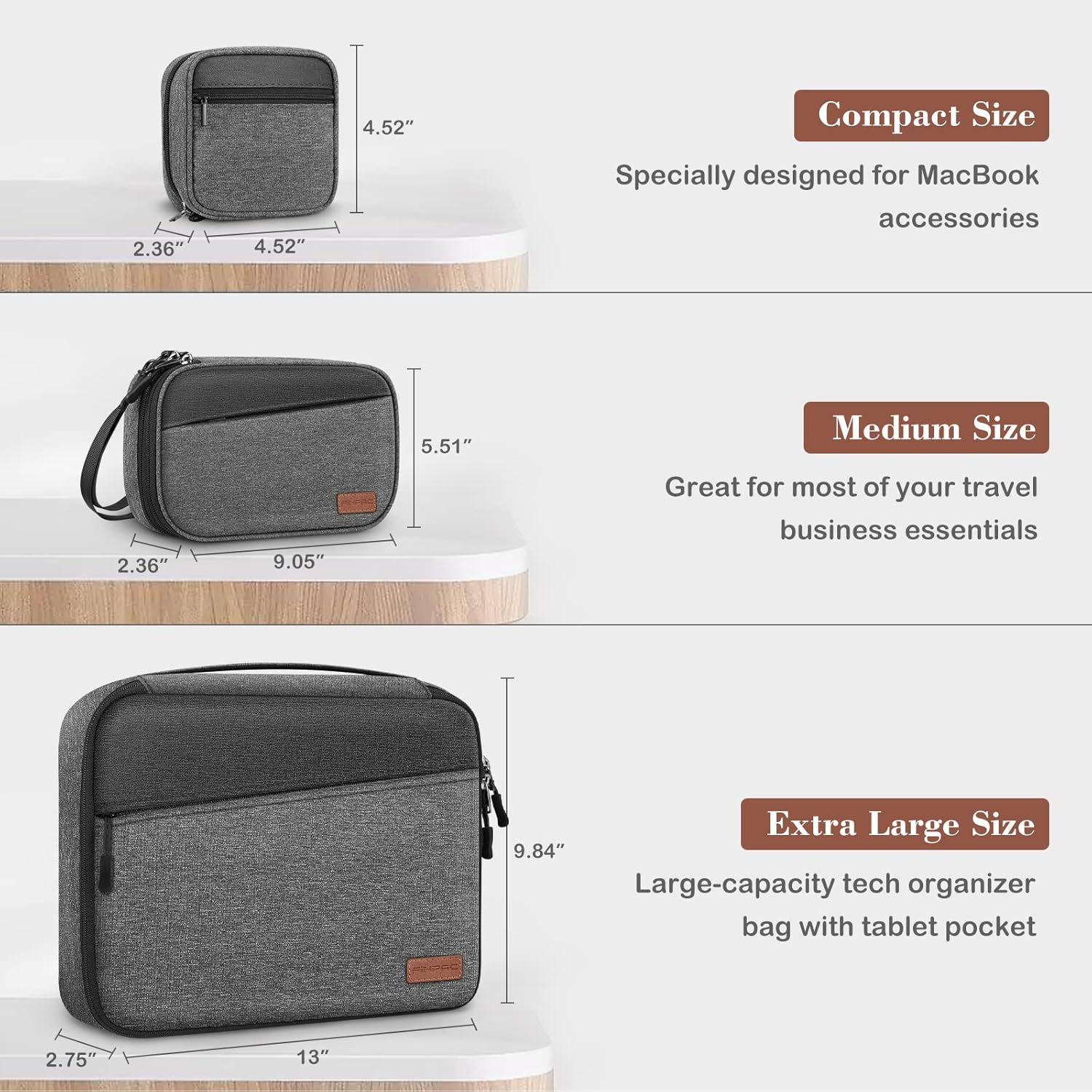 [LIGHTWEIGHT & PORTABLE ] The dimension of the electronic bag is 9.05 x 5.51 x 2.36 inches. It’s lightweight and compact so that it doesn’t take up too much space in your luggage, backpack, baggage, and handbag, and is easy to carry around during your business trip. (Bag ONLY! Cords and electronic accessories are not included)