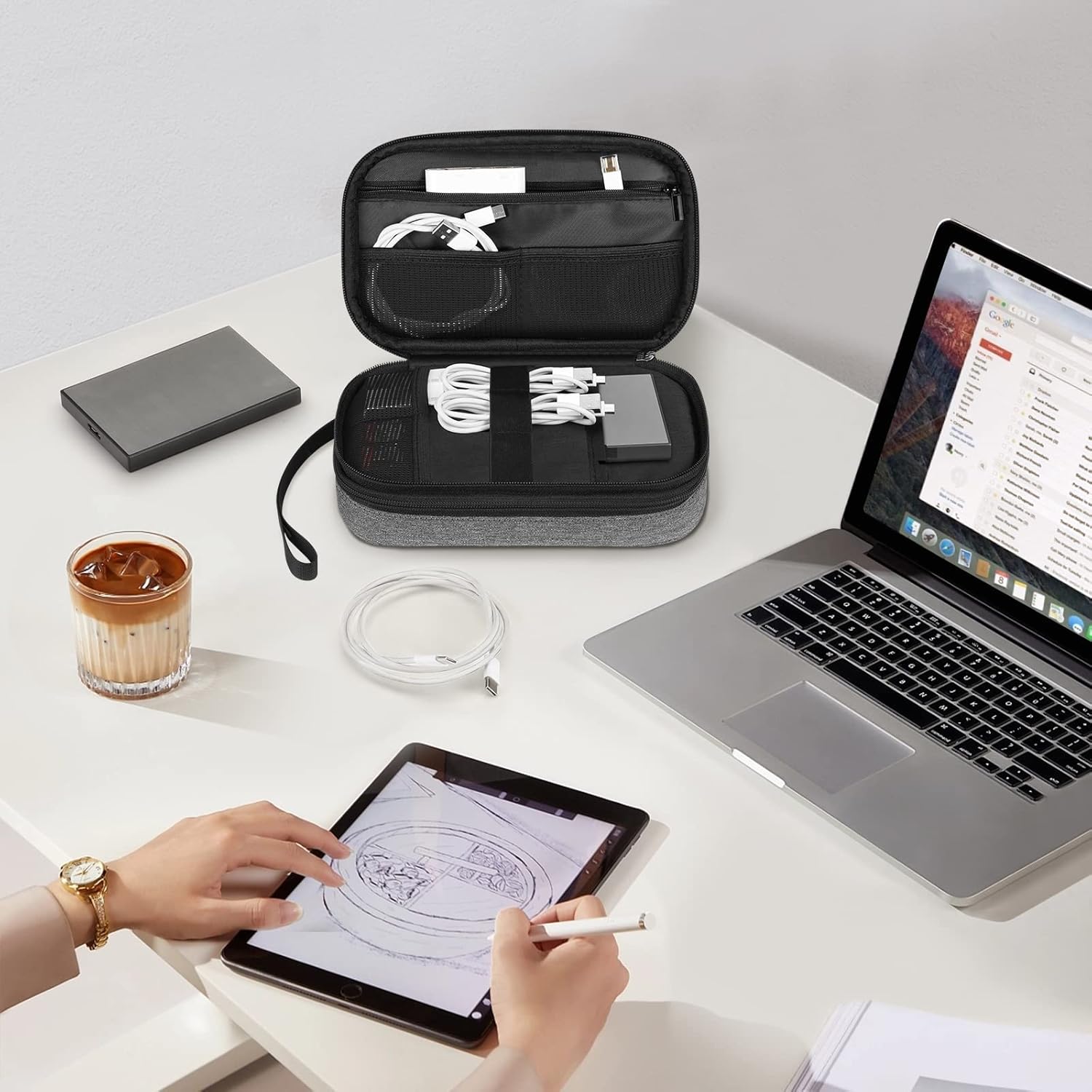 [ELECTRONIC ORGANIZERS] The electronic organizers own multiple compartments with different sizes to accommodate various electronic essentials, likely, cables, cords, chargers, SD cards, hard drives, mice, USB flash drives, pens, and other accessories. It helps in keeping your gadgets neatly organized and untangled.