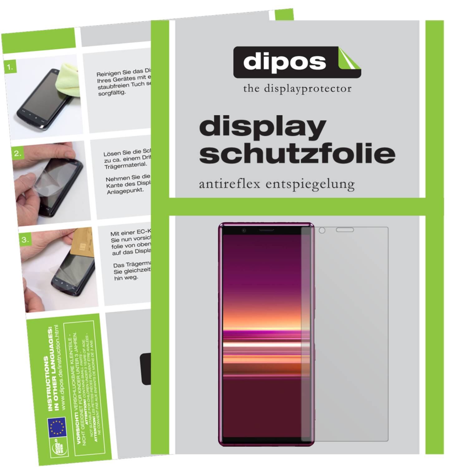 Modern silicone adhesion ensures that the film attaches itself to the display and can be applied without forming bubbles. Small bubbles can be easily pushed to the edge. Adhesion is achieved completely without glue, which means the dipos film can be removed even years later without leaving residues behind and without slipping during use.