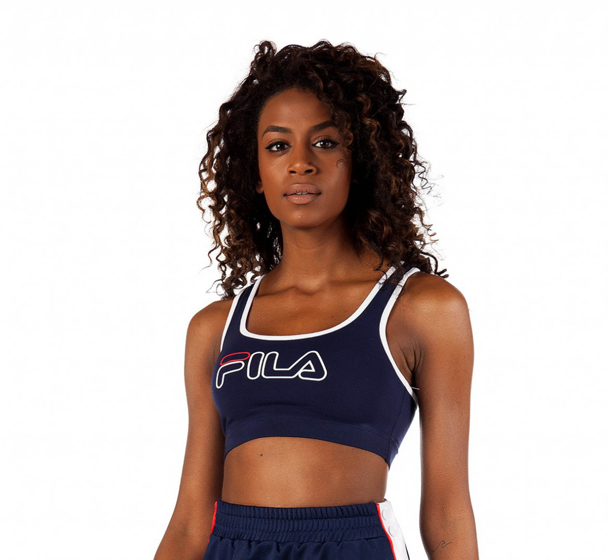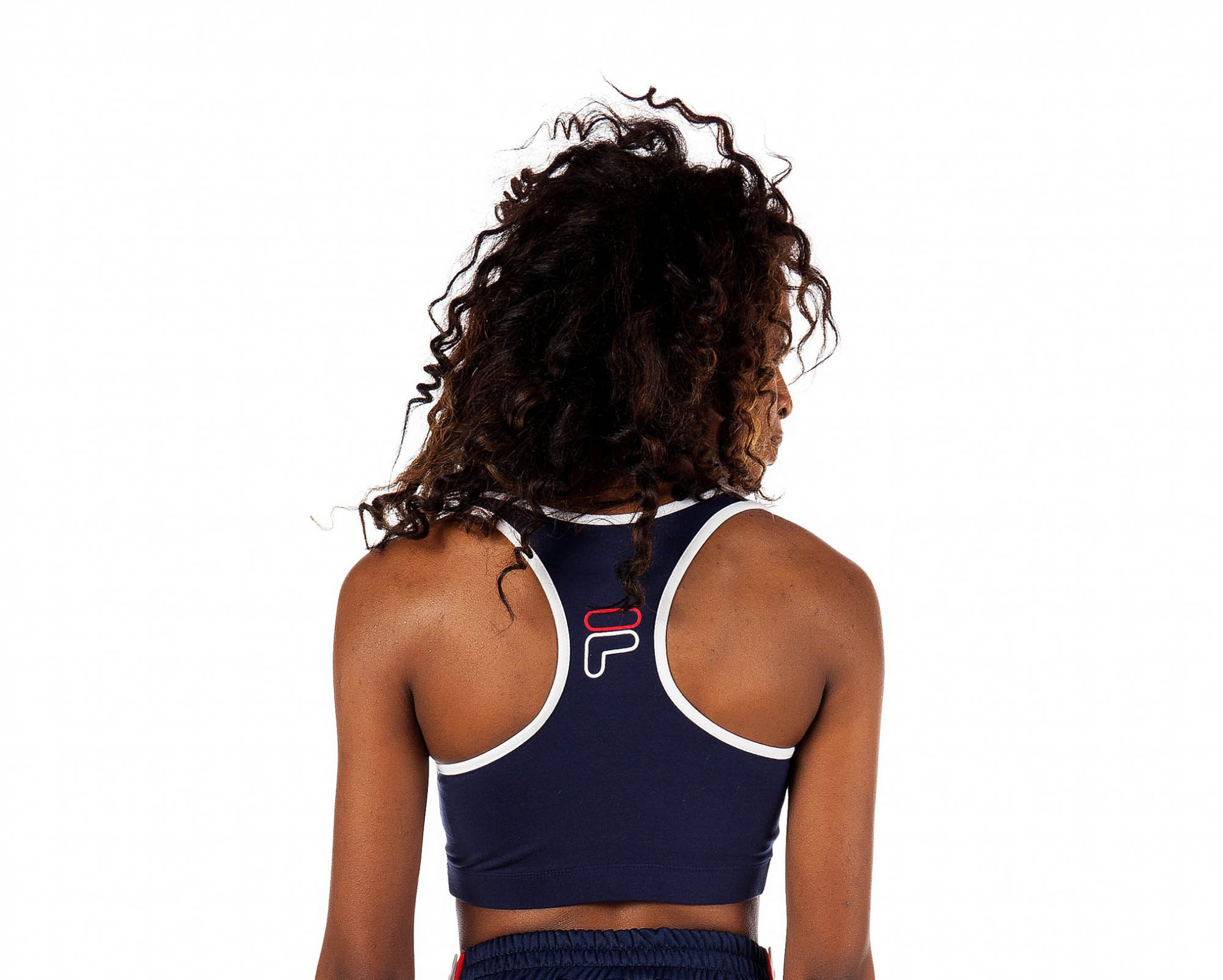 This sports bra style top features a sexy, athletic look with our classic logo printed across the front and contrasting piping.