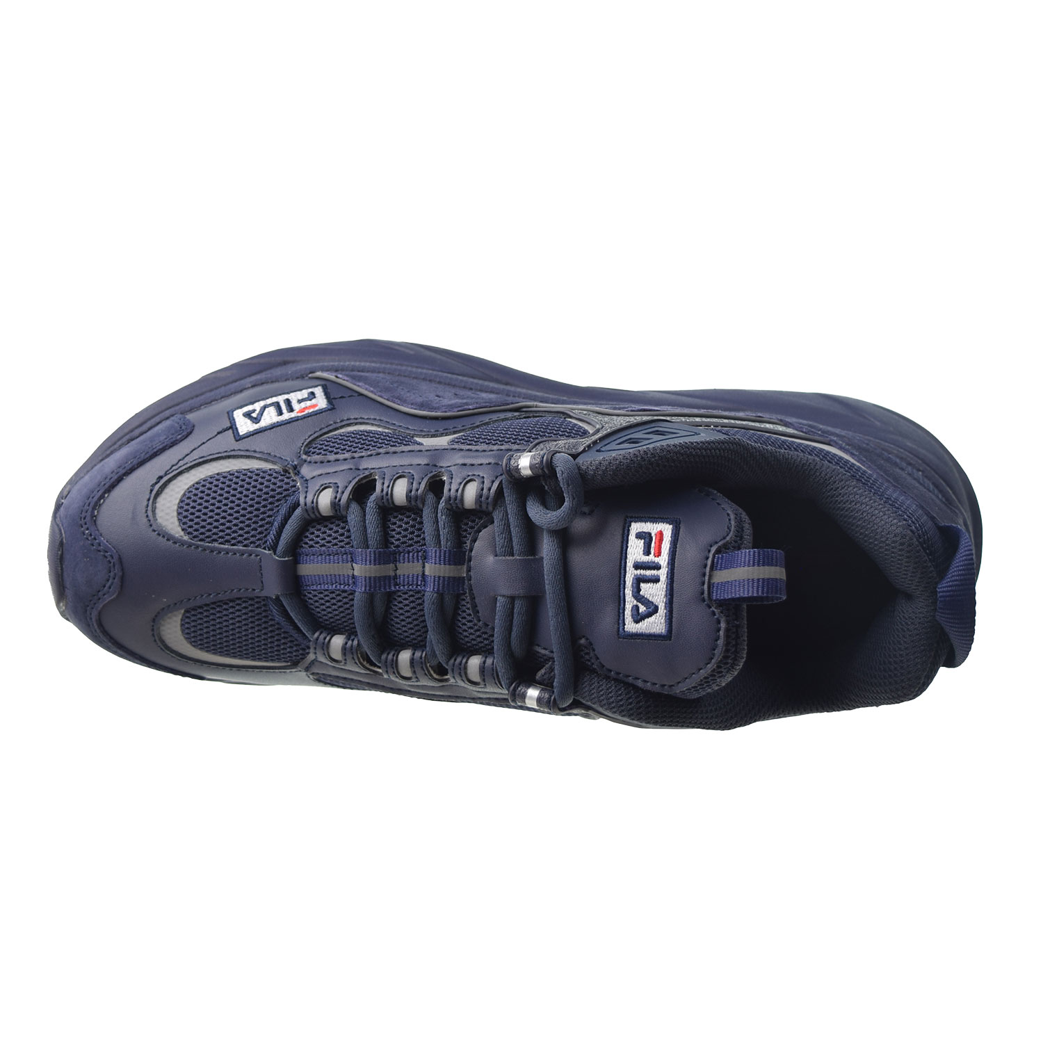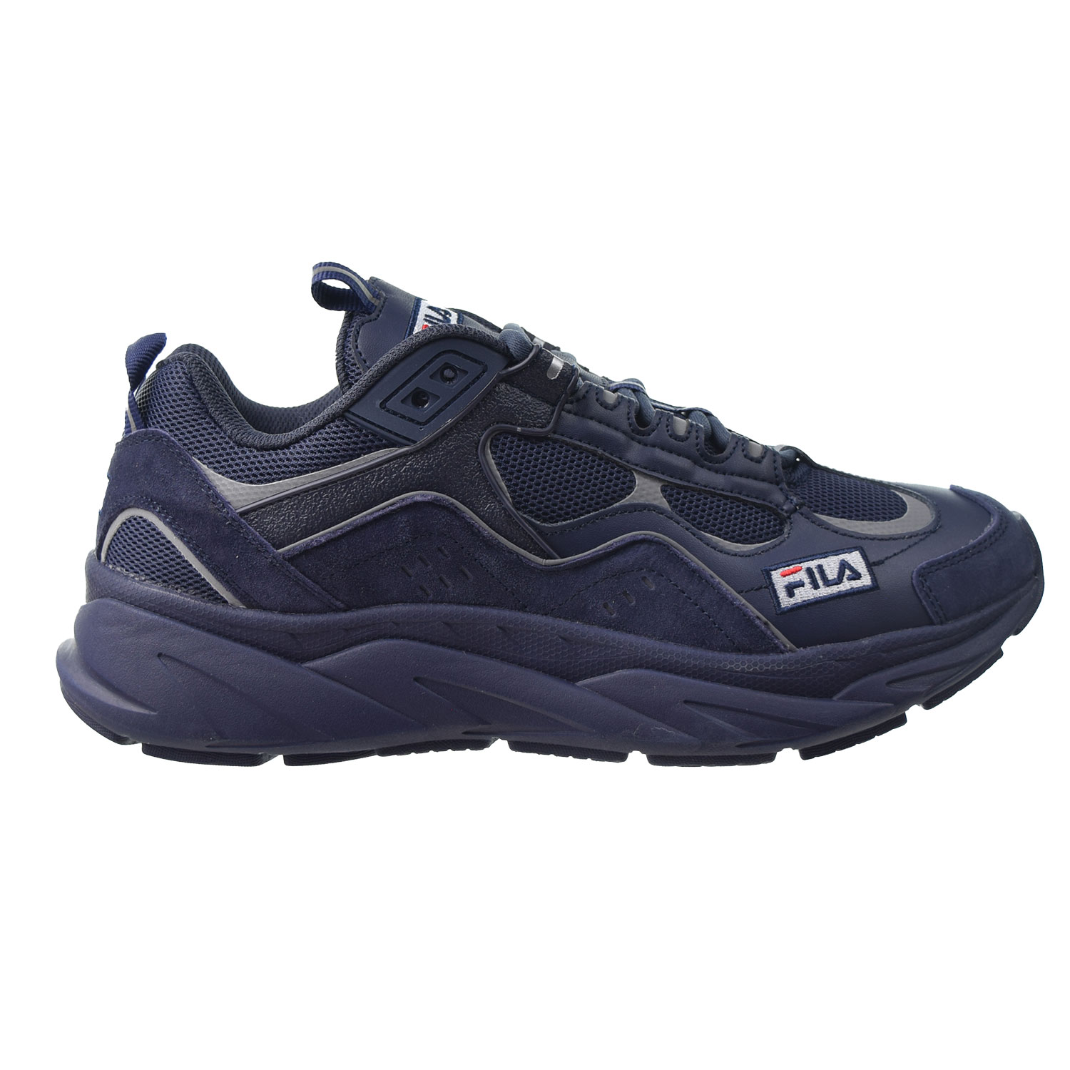 Fila Trigate Plus Men's Shoes Triple Navy. Molded logos on tongue, quarter and back counter reflective detailing on upper