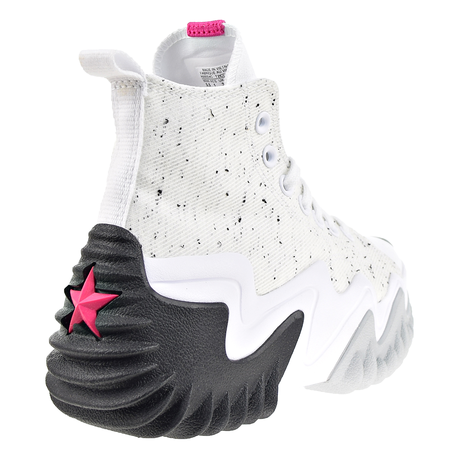 The Run Star Motion takes classic Converse DNA and pairs it with an ultra-modern, innovative midsole to completely redefine platform style. This expressive, lugged base elevates the cotton twill upper, made with a blend of at least 30% recycled cotton. A marble-printed faux leather star ankle patch brings in '90s-inspired color for a touch of nostalgia in modern form. Pop-color tongue webbing matches back to the patch, giving the canvas tongue a bright, throwback touch. All supported by a CX sockliner and CX foam midsole for lightweight, maximum comfort. Run it back.