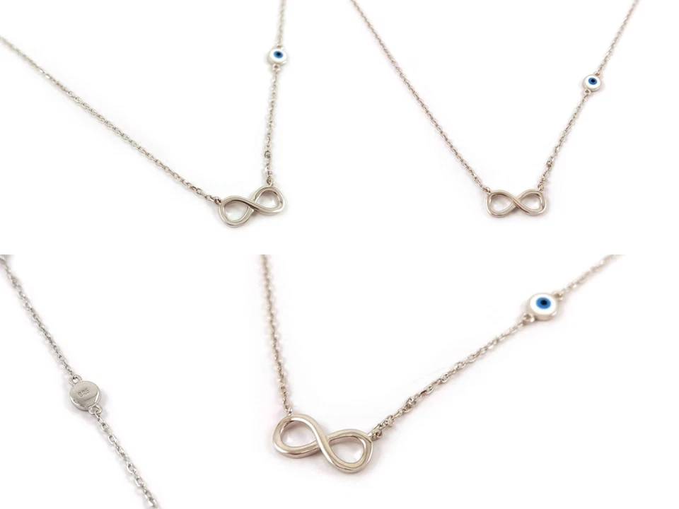 Sterling Silver 925 Infinity Evil Eye Fine Necklace