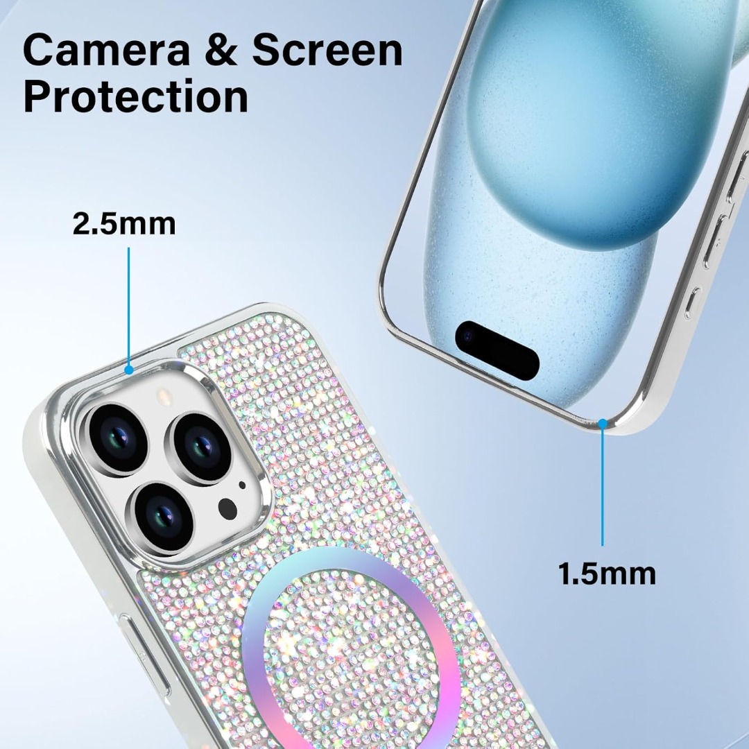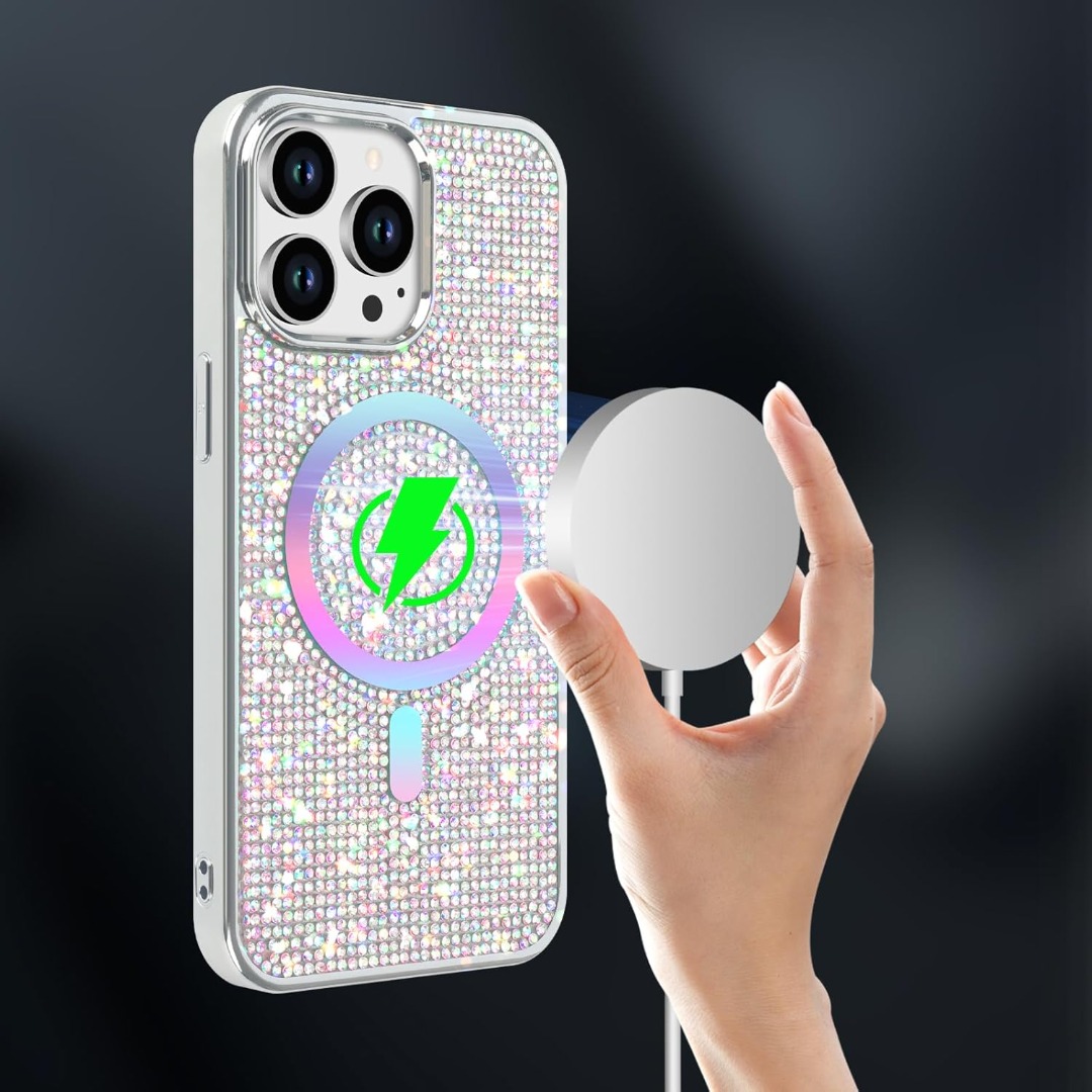 8. Compatible with MagSafe Accessories:- The Glitter Diamond Magnetic Case is perfectly compatible with MagSafe accessories including the MagSafe Wallet, MagSafe Strap, and MagSafe Car Mount.             This makes it easy to install and use your favourite MagSafe accessories while keeping your phone securely in place.