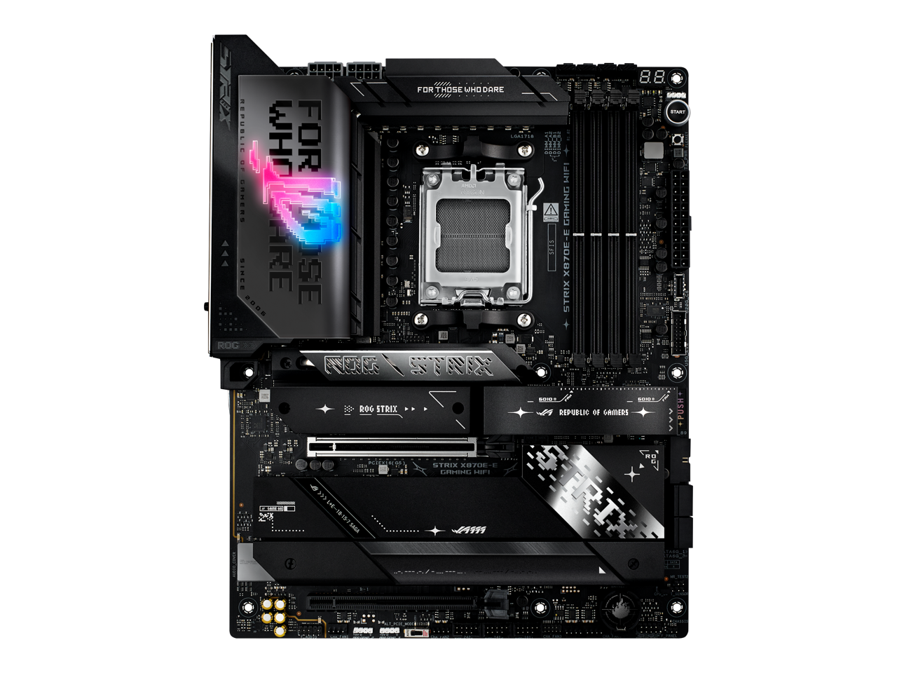 ASUS ROG STRIX X870E-E GAMING WIFI AMD AM5 X870 ATX motherboard 18+2+2 power stages, Dynamic OC Switcher, Core Flex, DDR5 AEMP, WiFi 7, 5x M.2, PCIe 5.0, Q-Release Slim, USB4, AI OCing & Networking