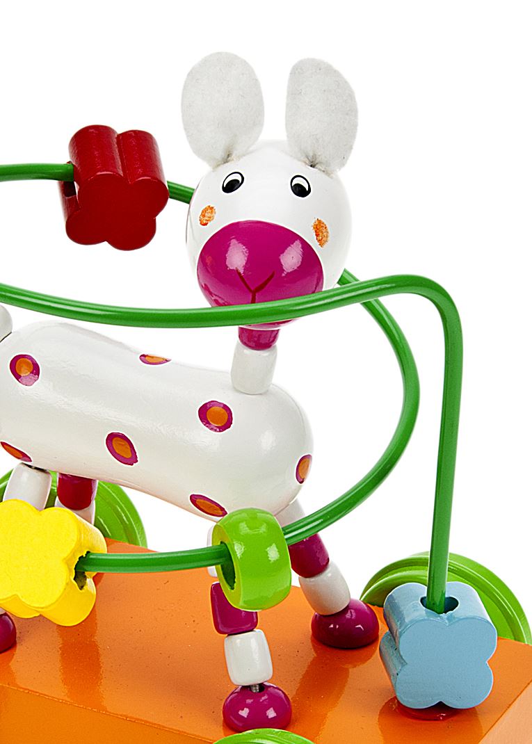 - Ce charmant chariot attraction traditionnel est beau jouet dispose d'un blanc bandé chien tacheté mignon et original sur roues et un design coloré de perle de labyrinthe