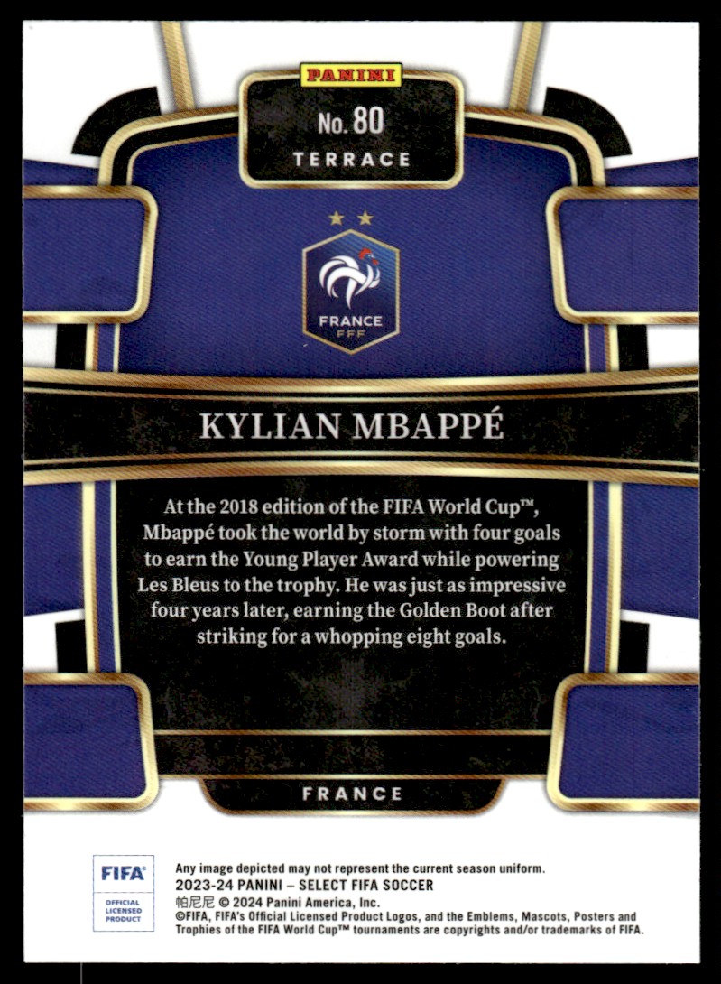 | 2024 Panini Select Fifa Kylian Mbappé France #80 | ||||||||||||||||