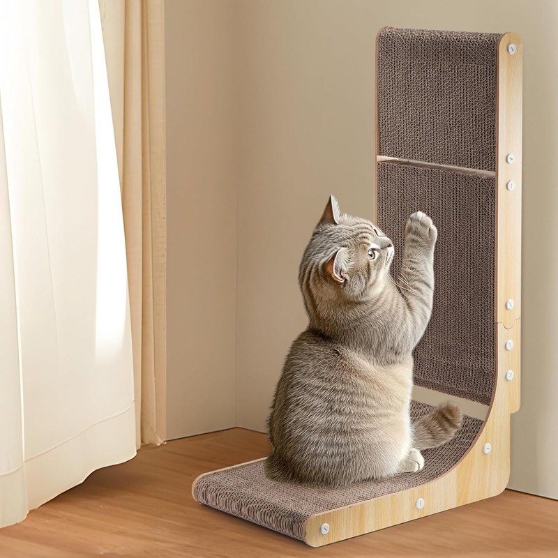 - [L-Shaped Versatility]: This cat scratching board’s L-shaped design saves space, and cats can choose to scratch horizontally or vertically. Its beautiful design attracts cats to come, ensuring your home stays clean and tidy.