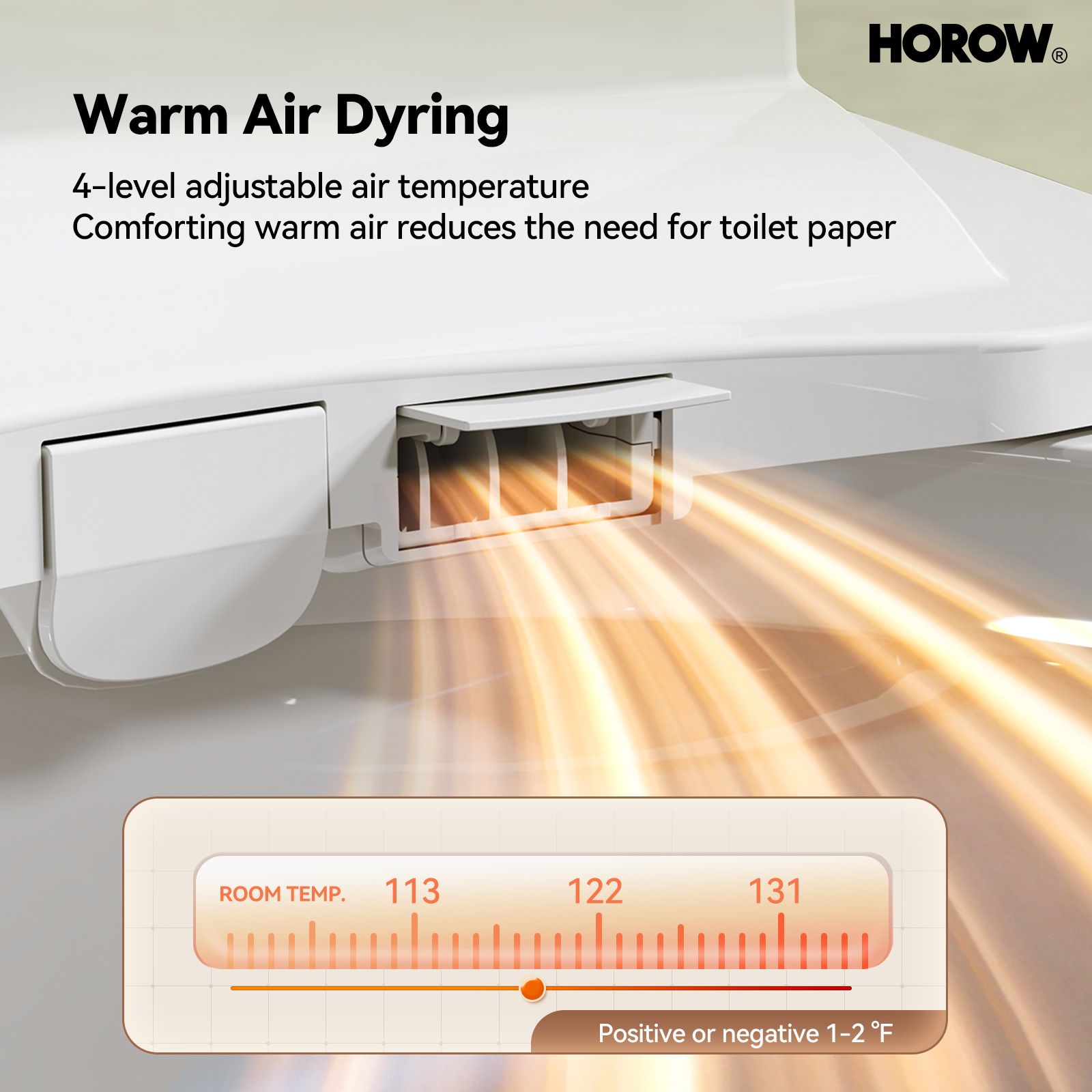 Warm Air Drying: The specially designed warm air drying function is designed to meet your expectations. When using the rinse function again, you can use the warm air drying function to help you stay dry and comfortable, completely eliminating the need for paper towels, and you can also turn on the warm air to keep you warm in cold weather.