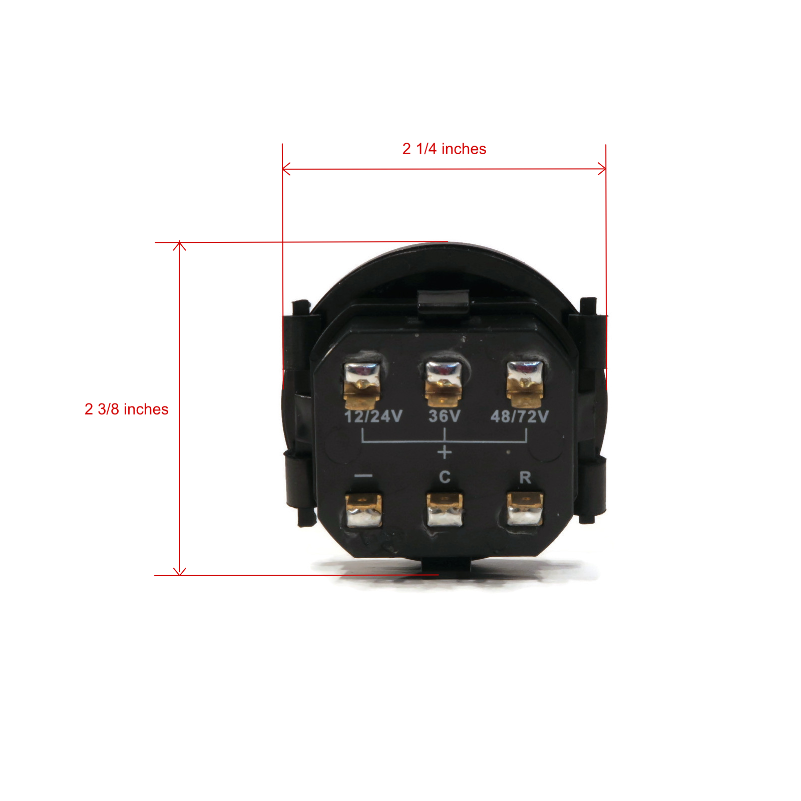 • Specs - Voltage Types: 12V, 24V, 36V, 48V, 72V. Capacity: 1 Red, 2 Yellow, 7 Green. Terminals: Max 3, 3/16" spades. Operating Current: 20 MA nominal. Operating Temperature: -40° C to +85° C. Accuracy: Around 0.5%. Polarity: Positive / Negative. Memory Capacity: CMOS EEPROM. Color: Black; Refer to images 2 & 3 for more information