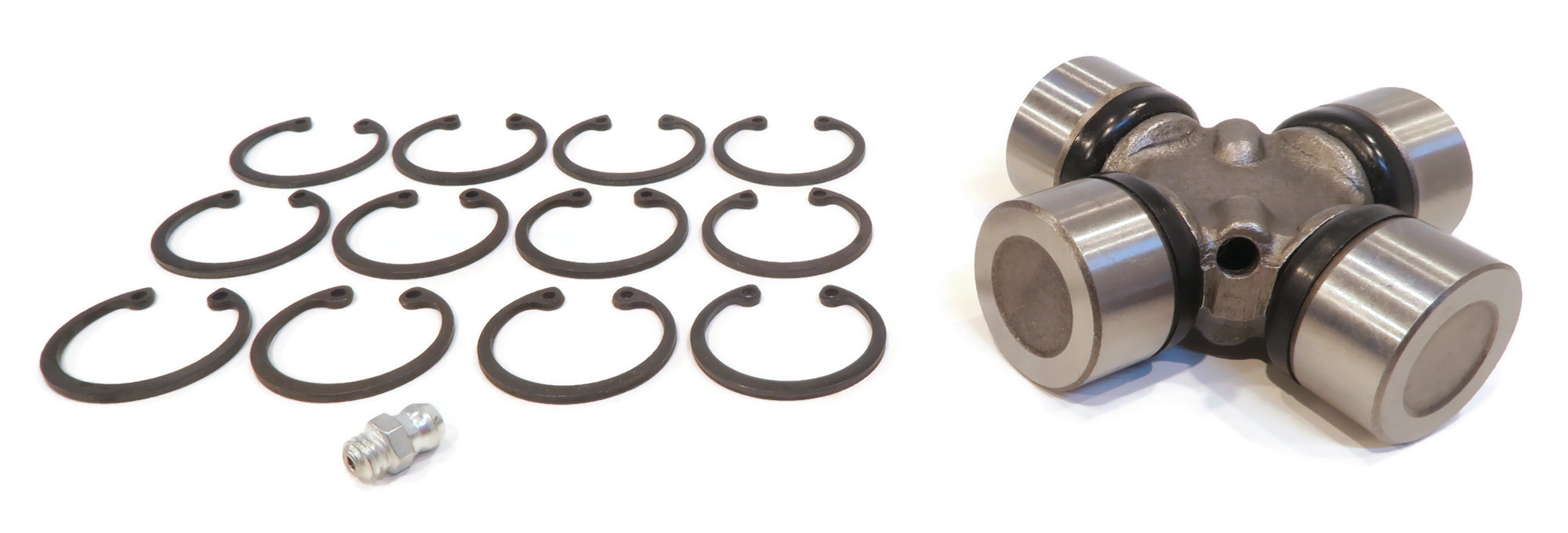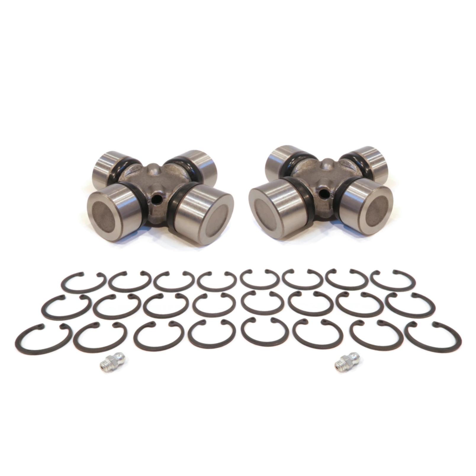 • Includes - (2) Cross & Bearing U-Joint Assemblies with External Clips and Grease Zerk Fittings; comes as shown in the first image