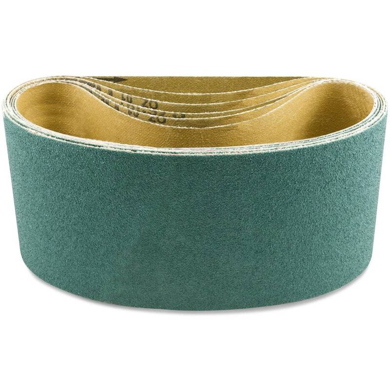 Our industrial grade zirconia sanding belts are a great choice for heavy duty grinding applications. Zirconia’s self-sharpening abrasive grains extend belt life up to 2.5 times longer than aluminum oxide. Zirconia fractures during use, continuously revealing sharp abrasive grain. Its durability makes it a great choice for knife makers, blacksmiths, welders, or anyone working with metals. While it will not match the longevity of ceramic abrasives, zirconia is a cost-effective alternative. Wet or dry applications. Hand built in the USA.