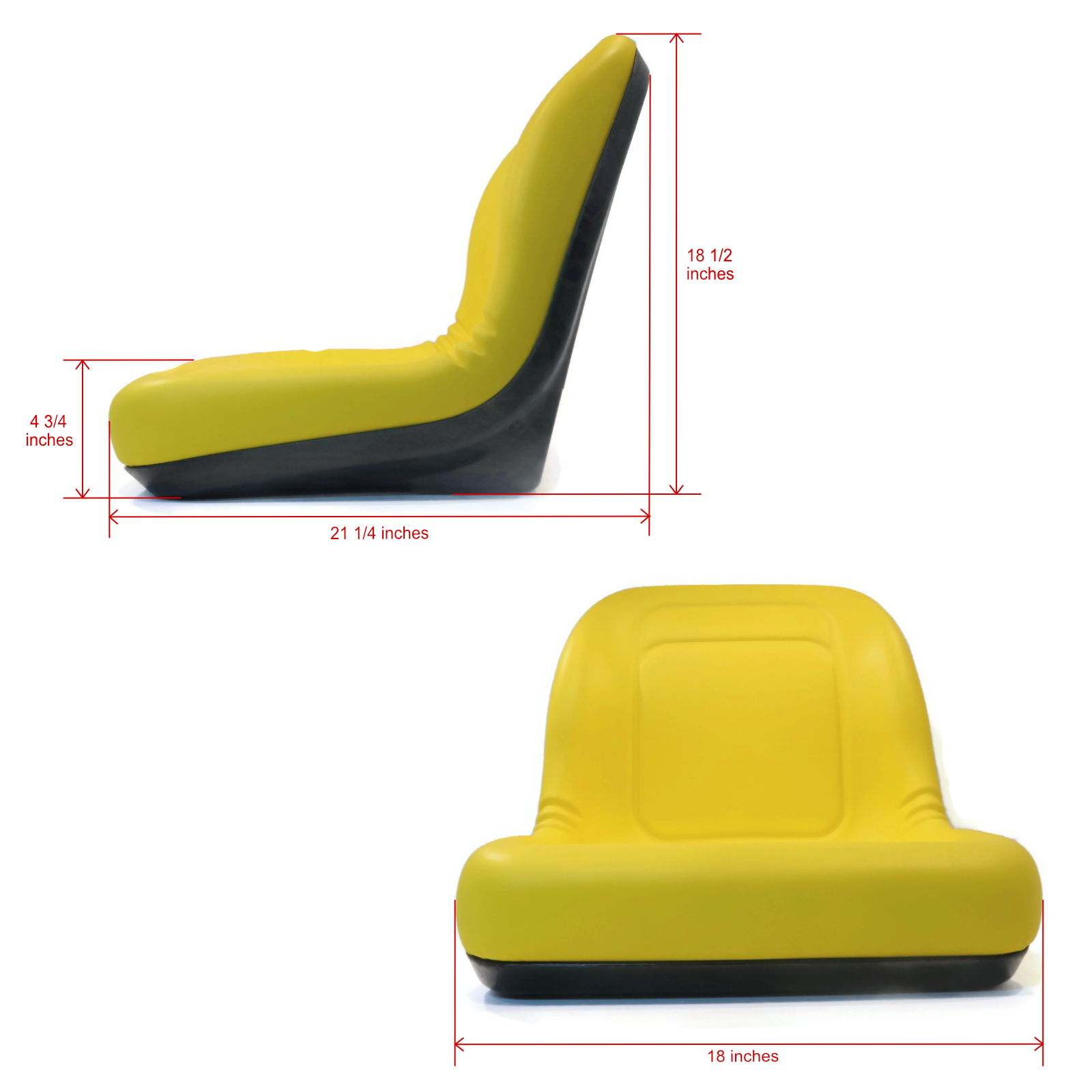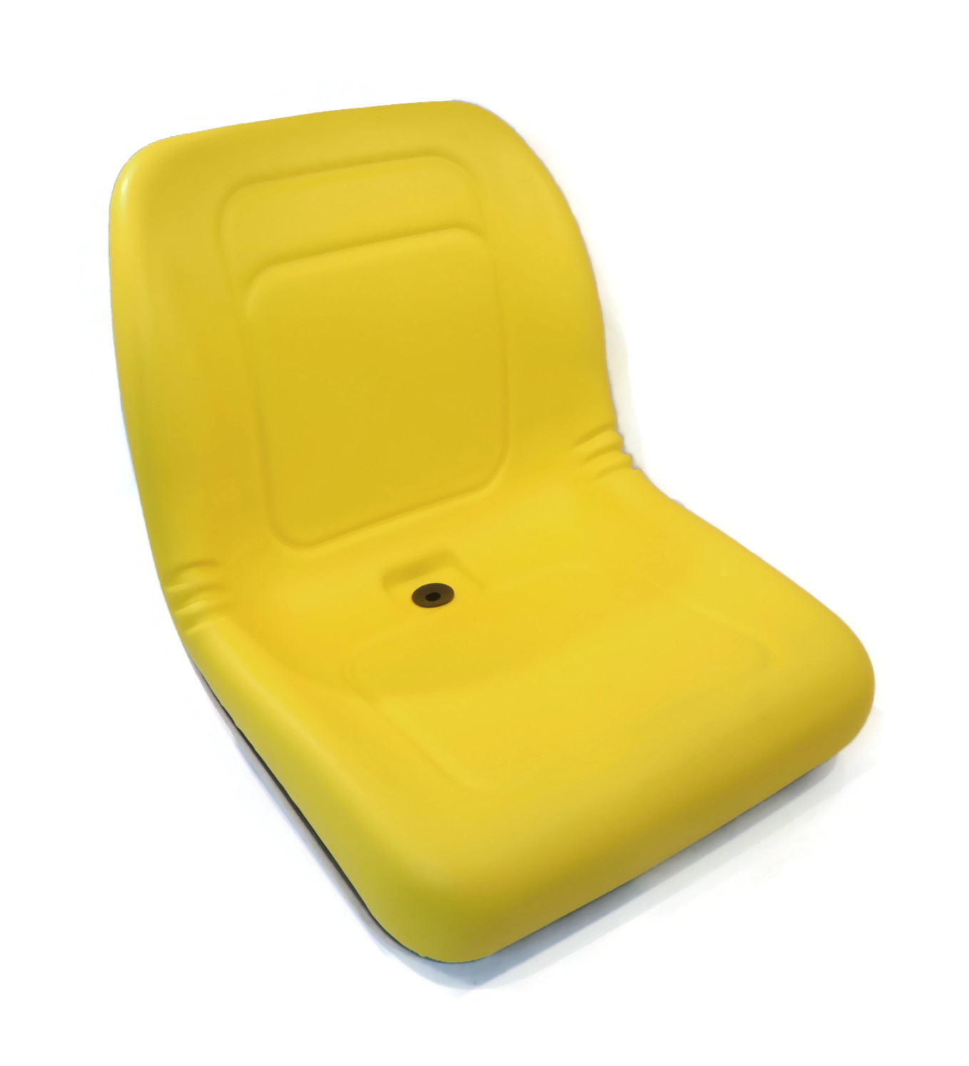 • Features - Heavy-duty vinyl covering. Vacuum formed waterproof vinyl. Ergonomic cushions to ensure operator comfort. Durable blow molded plastic frame is corrosion resistant. Central drain hole prevents water build-up. 19" high-back seat which will replace both original 16" and 19" high-back seats. Multiple mounting patterns