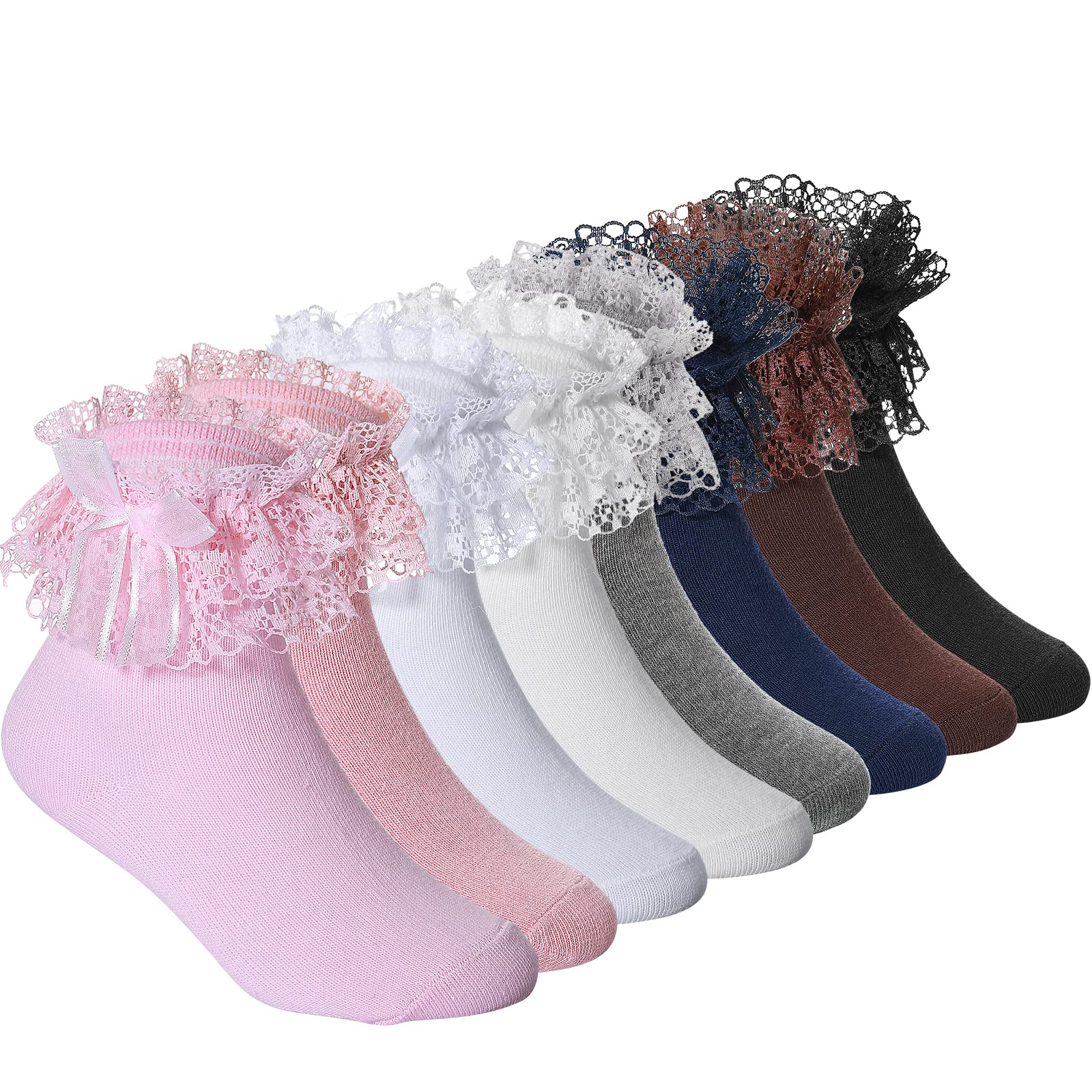 - Ruffle Dress Socks: the package comes with 8 pairs of ruffle dress socks in 8 colors, including black, white, bright white, navy, gray, dark brown, pink, light pink, ample in quantity for daily wear and replacement, you can dress your baby in socks of a different color every day