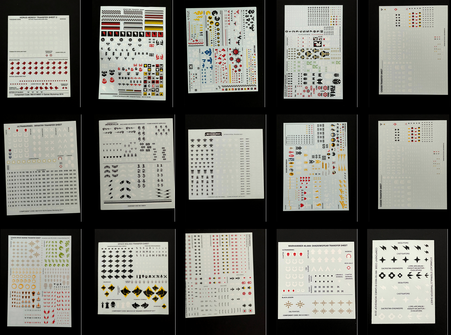 Selection of Warhammer transfer sheets
