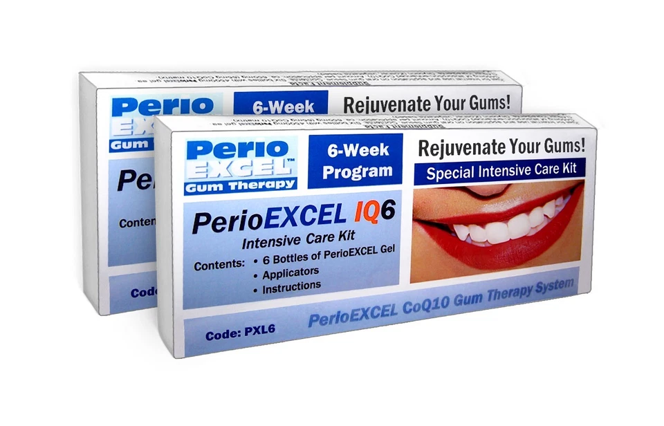 The PerioEXCEL PXL12 CoQ10 Gum Therapy Kit is an advanced 12-week program designed to restore gum health and treat gum disease, including gingivitis, periodontitis, and gum recession. This powerful treatment utilizes Coenzyme Q10 (CoQ10), a nutrient essential for cell regeneration, with superior absorption for fast and effective results.