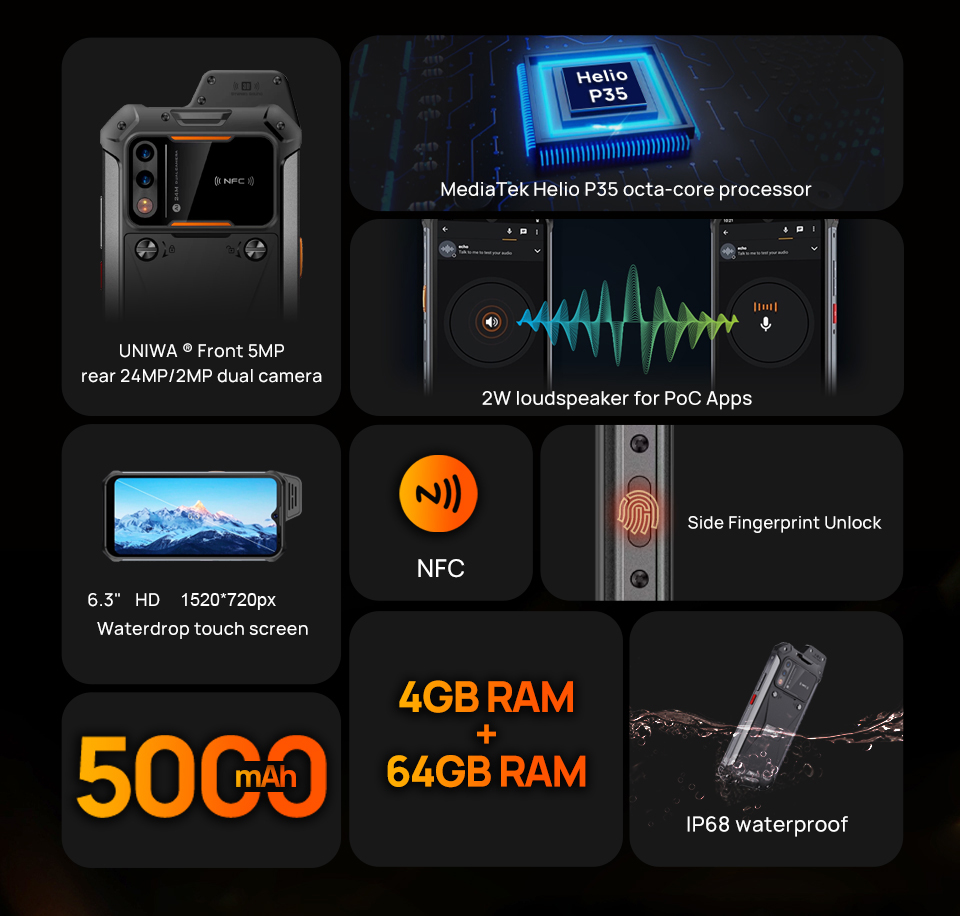 W888 IP68 Waterproof 4G Network Radio Andriod 11 Unlock NFC WIFI Mobile Phone Work with Zello Real-ptt