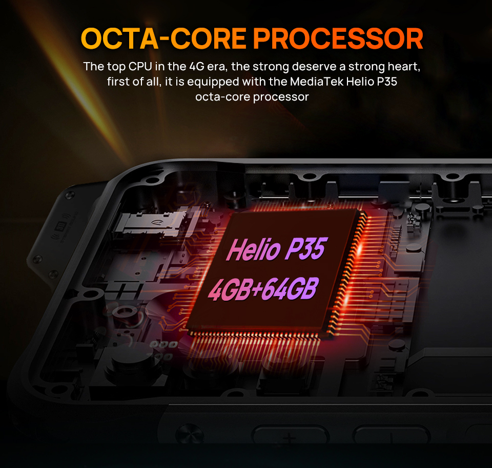 CPU: MT6765 Helio P35 Octa core, up to 2.3GHz