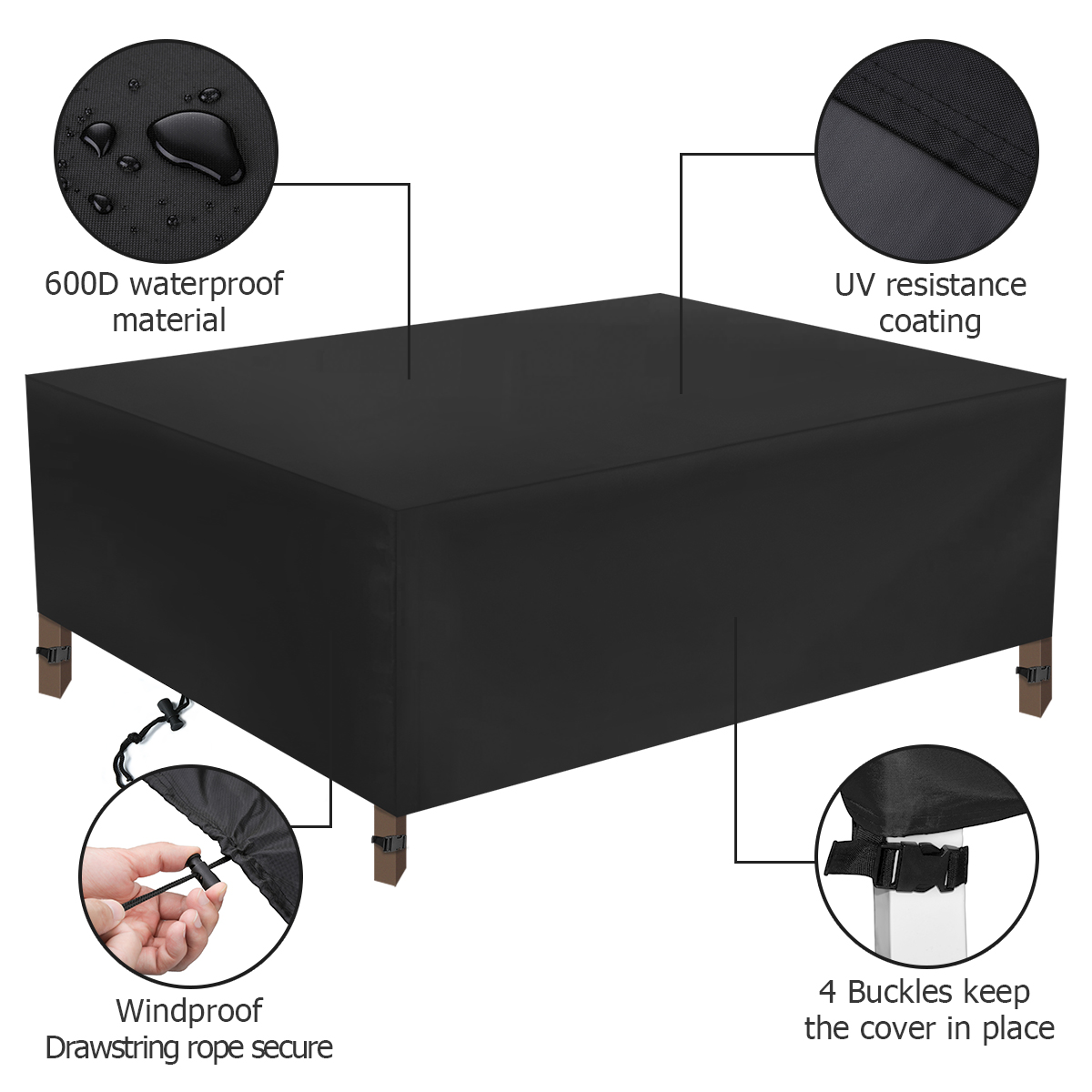 ❤The furniture cover is made up of Oxford Polyester with great waterproof ability and durability. Four windproof straps on each corner have been applied to better tie on the furniture legs. Double stitch instead of a single needle to provide general anti-tear against the wind.