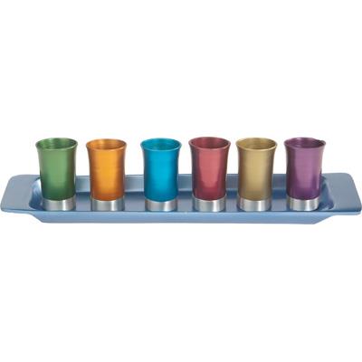 The Anodize Aluminum create a beautiful stained effect. The modern clean design of the cups also appears on the outer rim of the matching tray.