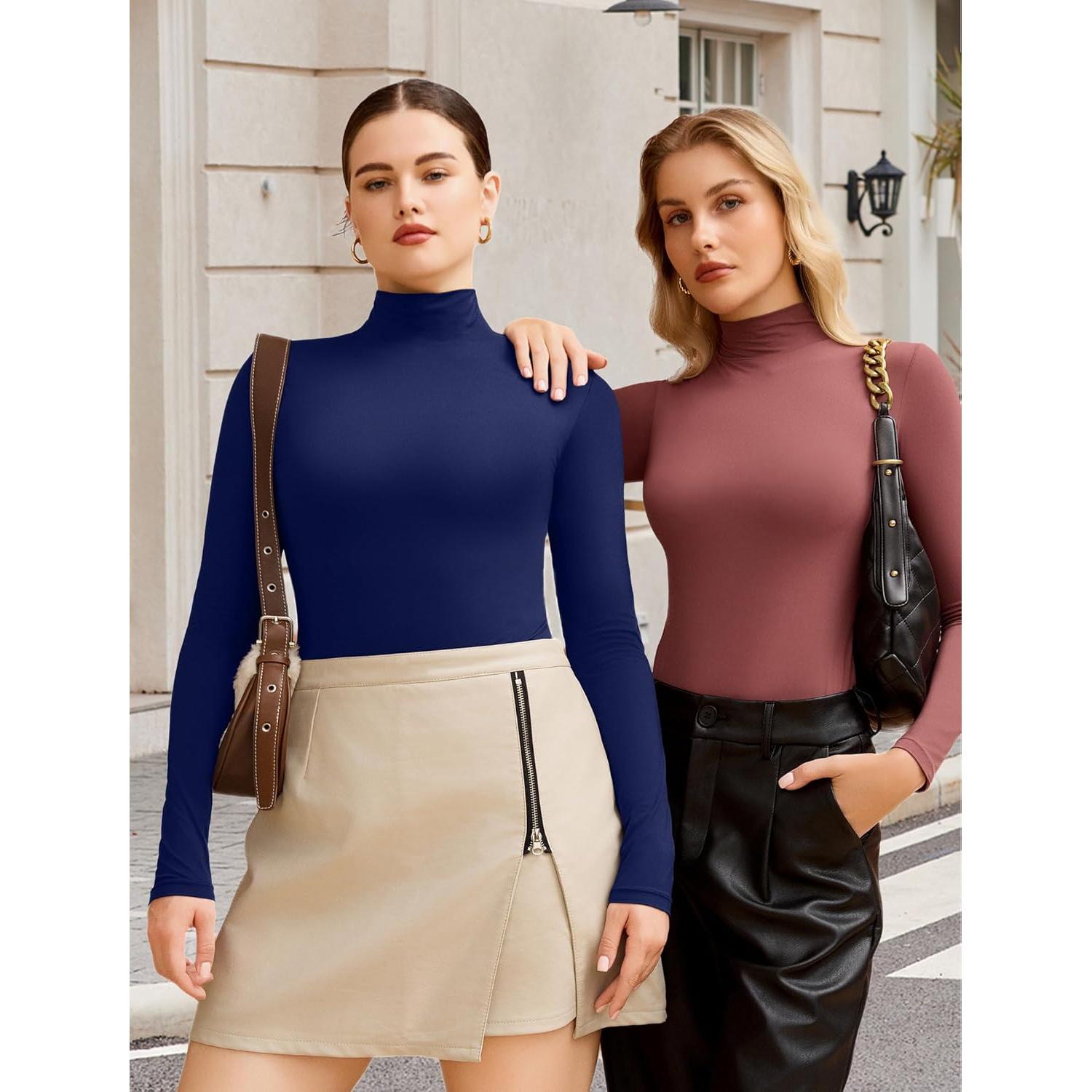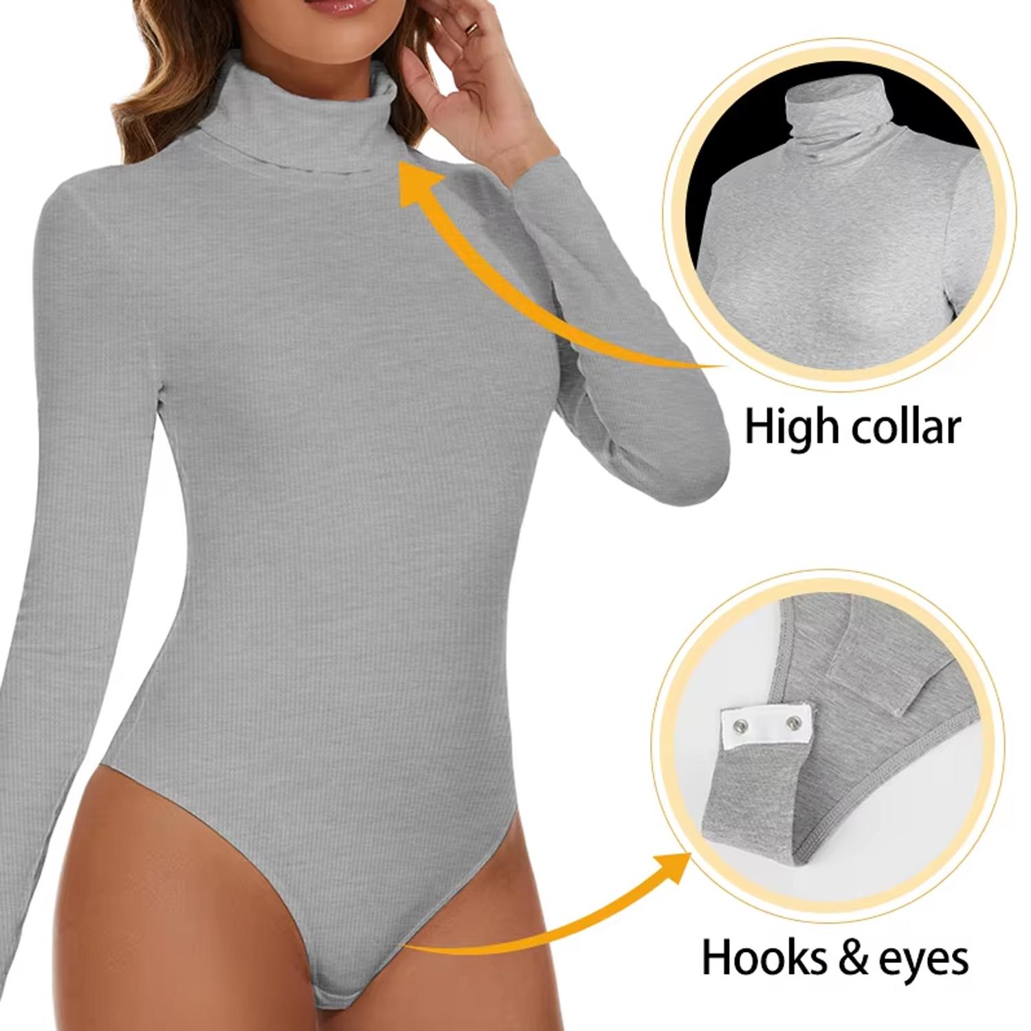 【Design】Long sleeve bodysuit with high neck, make the neck look slender. Soft and stretchy womens bodysuit fits most body shapes. The Snap closure design convenient for your dress.
