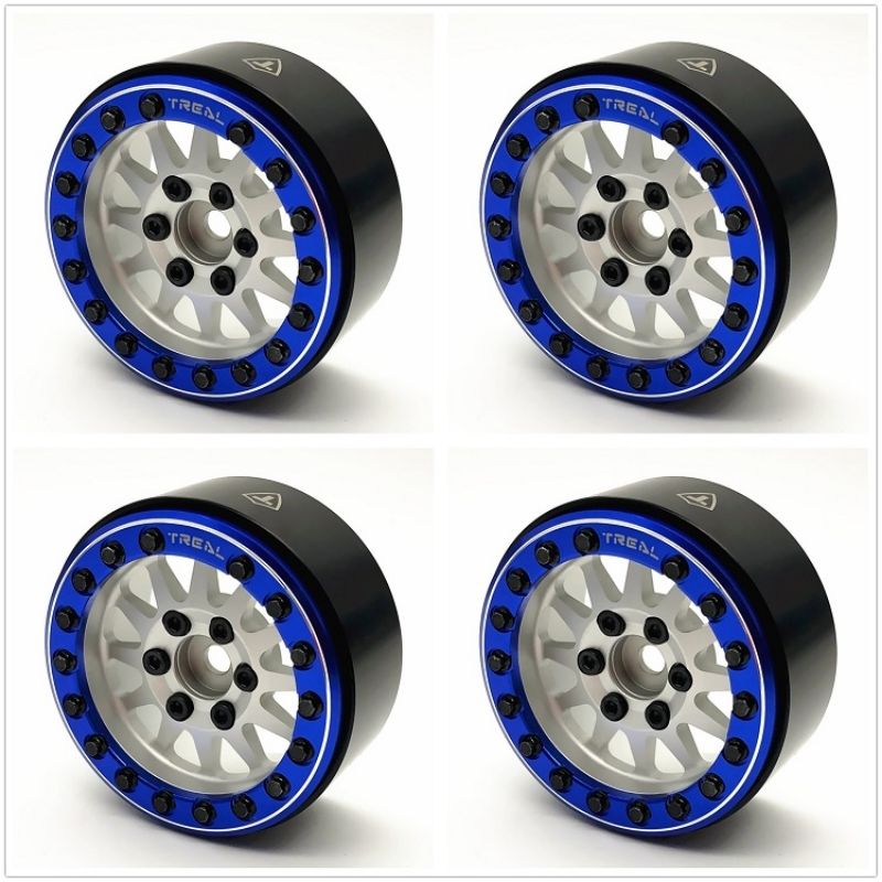 Treal X002P1ELU3 Beadlock Wheels 1.9 Rims Type-D (Silver-Blue) for 1:10 Rock Crawlers