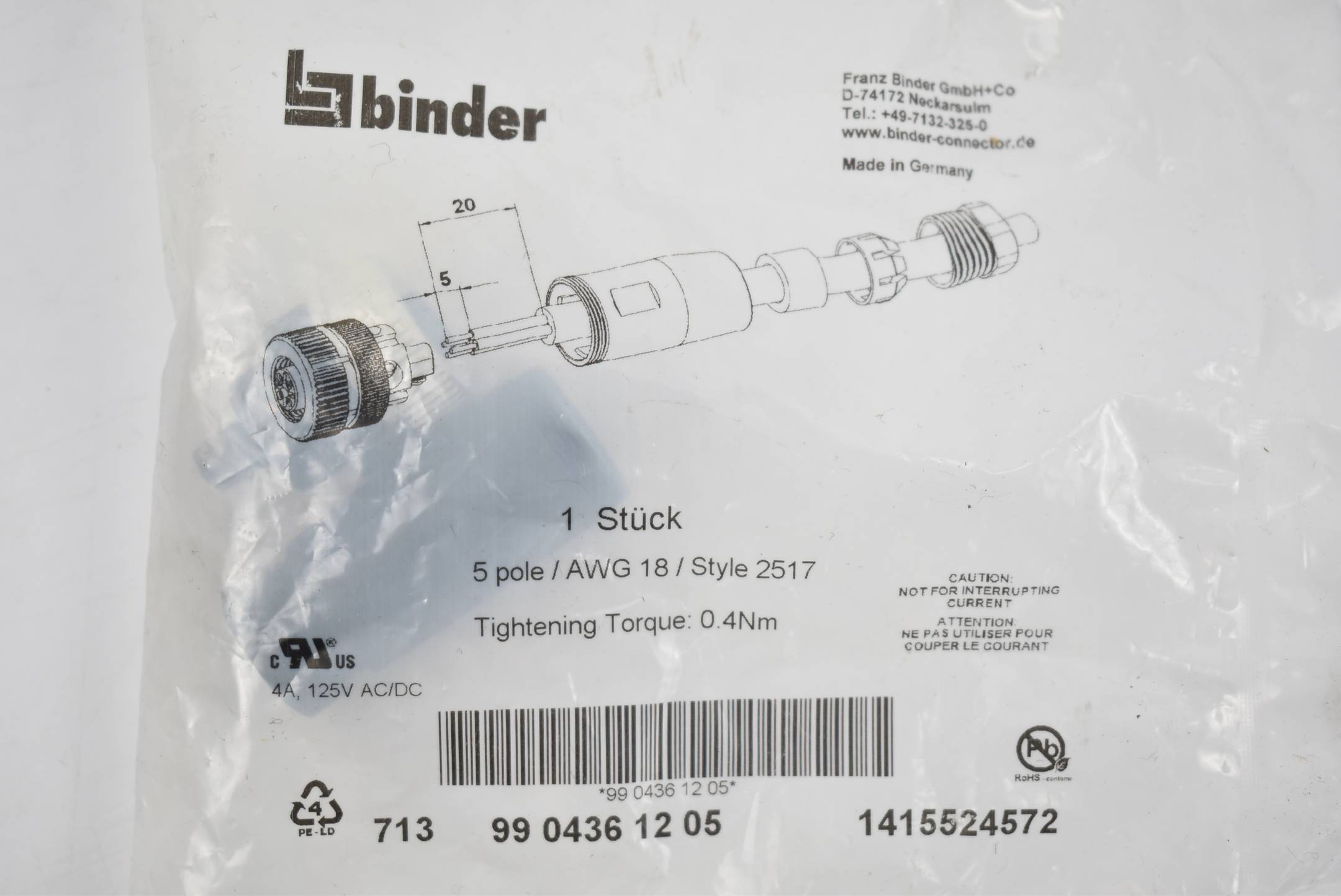 Binder Steckverbinder 5 polig AWG 18 Style 2517 ( 9904361205 )