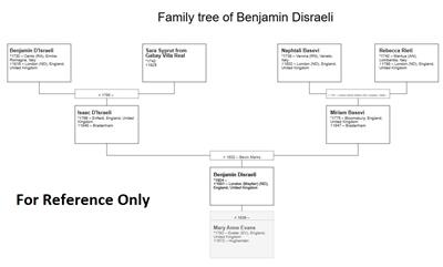 Disraeli was born in Bloomsbury, then a part of Middlesex. His father left Judaism after a dispute at his synagogue; Benjamin became an Anglican at the age of 12. After several unsuccessful attempts, Disraeli entered the House of Commons in 1837. In 1846, Prime Minister Robert Peel split the party over his proposal to repeal the Corn Laws, which involved ending the tariff on imported grain. Disraeli clashed with Peel in the House of Commons, becoming a major figure in the party. When Lord Derby, the party leader, thrice formed governments in the 1850s and 1860s, Disraeli served as Chancellor of the Exchequer and Leader of the House of Commons. (ref. Wikipedia)