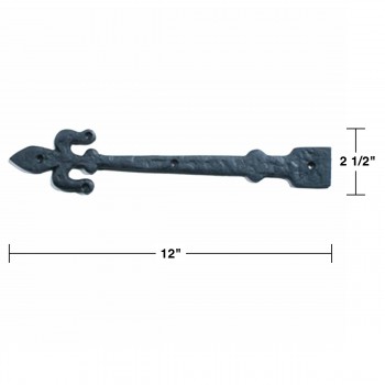 Give your door that classic colonial look without the hassle of real strap hinges using these beautiful false hinges. These ornate Fleur De Lis Antique Reproduction designed dummy strap door hinges are made of heavy duty wrought iron material. Featuring our proprietary RSF powder coat finish, these faux hinges will keep your doors looking vintage for years to come.