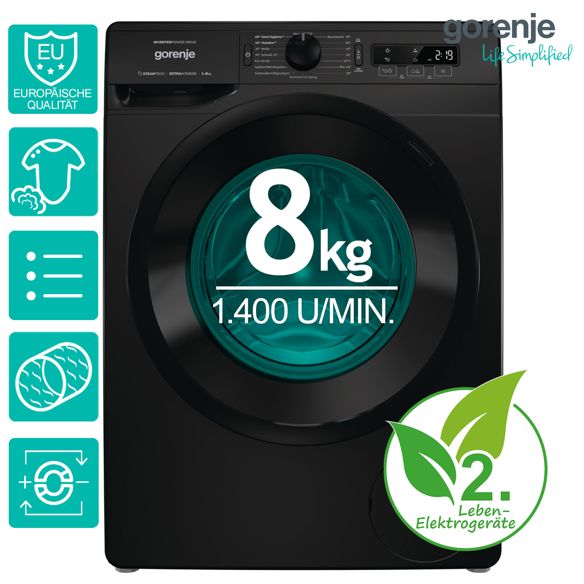 - Fassungsvermögen: 8 kg