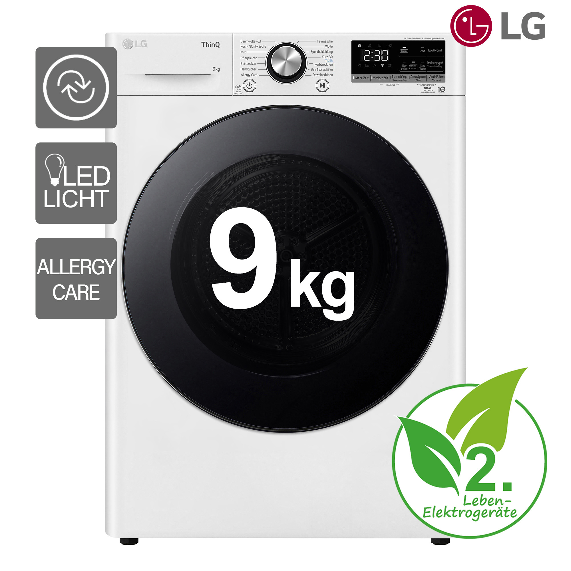 - Dual Inverter Wärmepumpentechnologie: schonende Trocknung mit niedrigen Temperaturen