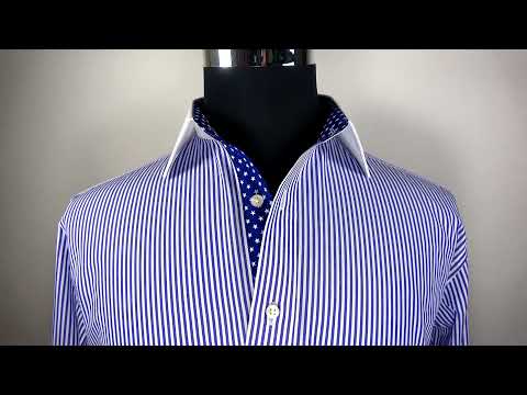Blue Stripe With White Collar \u0026 Cuffs Contrast Business Dress Shirt Inner Lining Fashion Boss Style