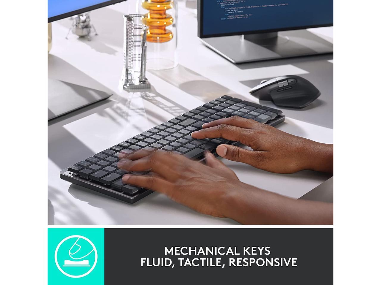 Logitech MX Mechanical Wireless Illuminated Performance Keyboard, Clicky Switches, Backlit Keys, Bluetooth, USB-C, macOS, Windows, Linux, iOS, Android, Graphite