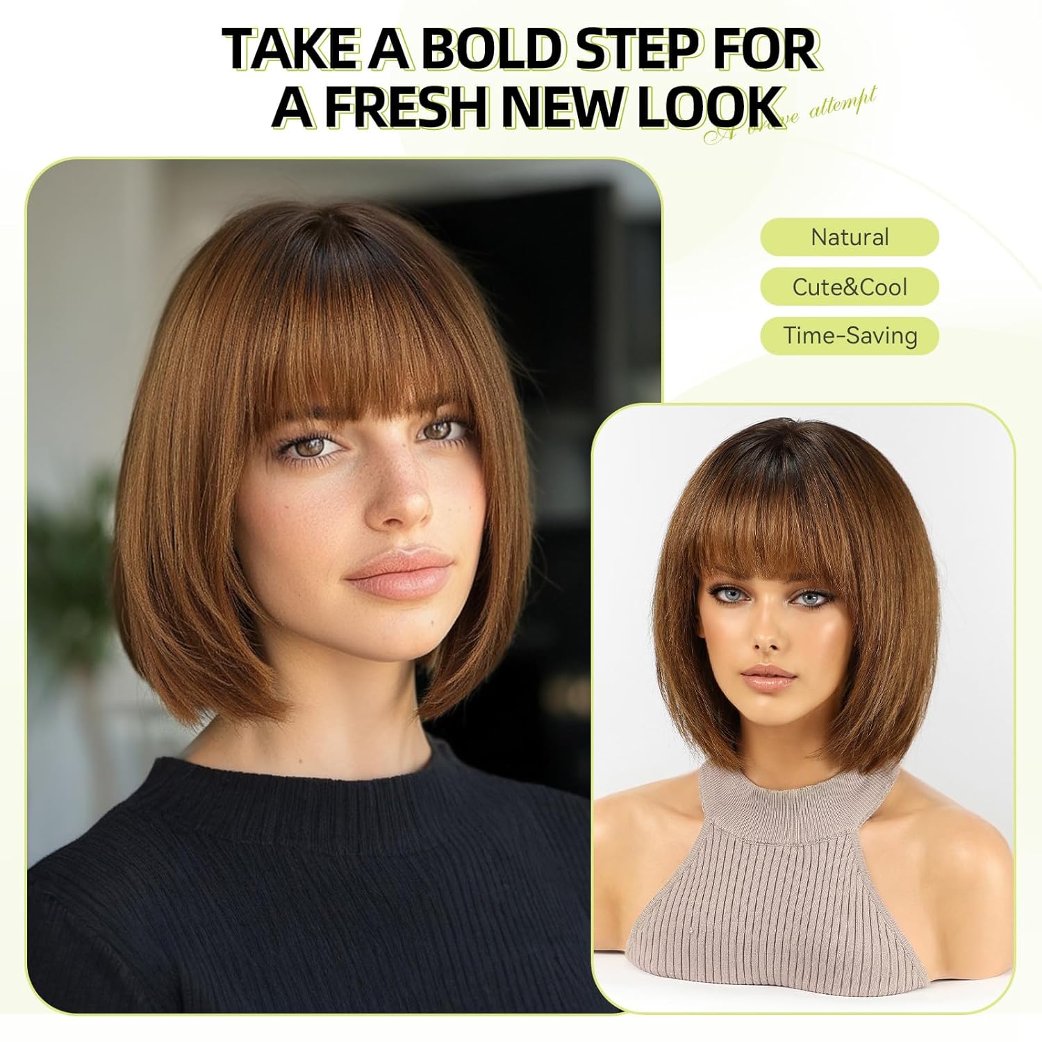 Glueless Ombre Brown Bob wig with Bangs Human Hair Wigs for Women None Lace