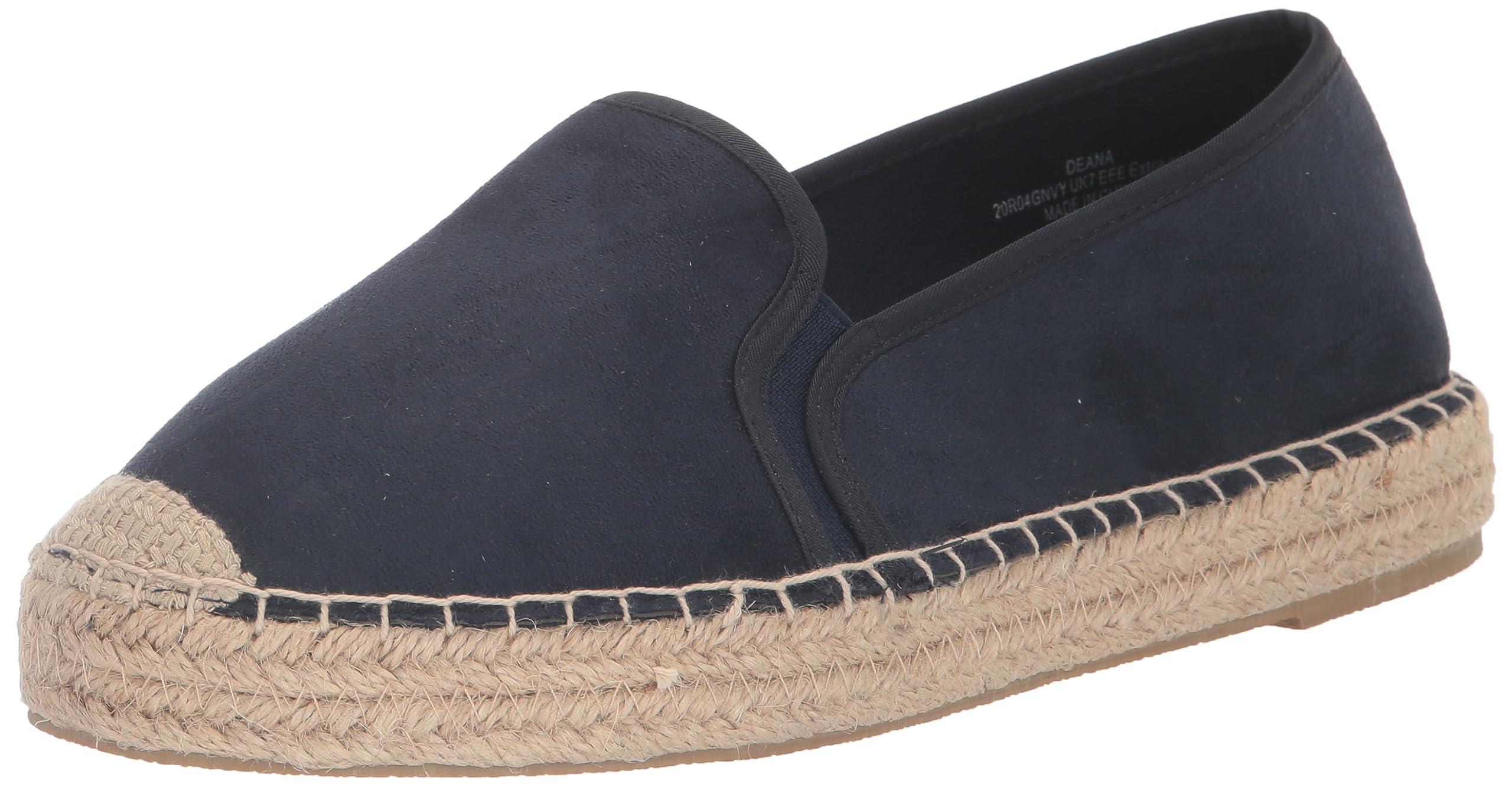 Description Add to your rotation of everyday casual shoes with our Slip On Espadrille, a must-have style of the summer! This pair features the classic espadrille woven sole and is designed in an wide fit for everyday comfort. Key Features Include: - Round toe - Elasticated side gussets - Slip on style - Faux leather upper - Woven espadrille sole Team these shoes with a floaty floral maxi dress and round rattan handbag. Resort vibes, much?