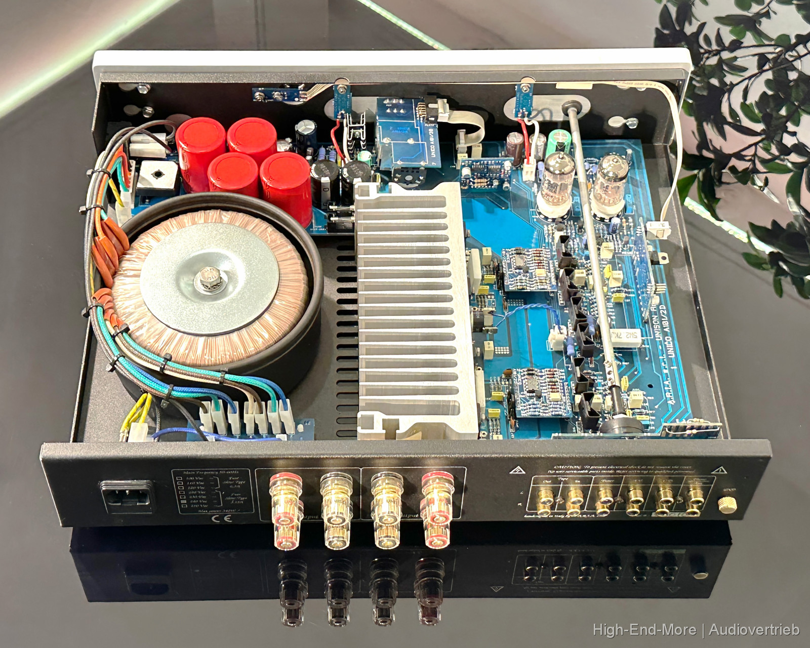 steht ein schöner Vollverstärker der Italienischen High-End Manufaktur Unison